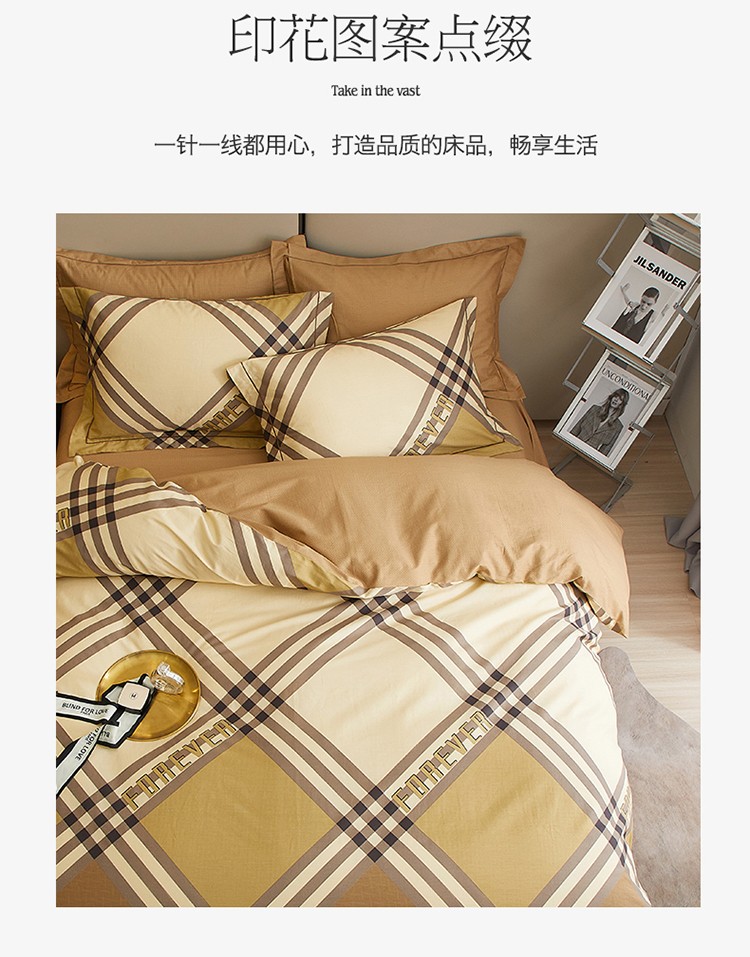 商品名称:曼秀琳 2023新款40s匹马棉印花系列四件套 杰菲-咖