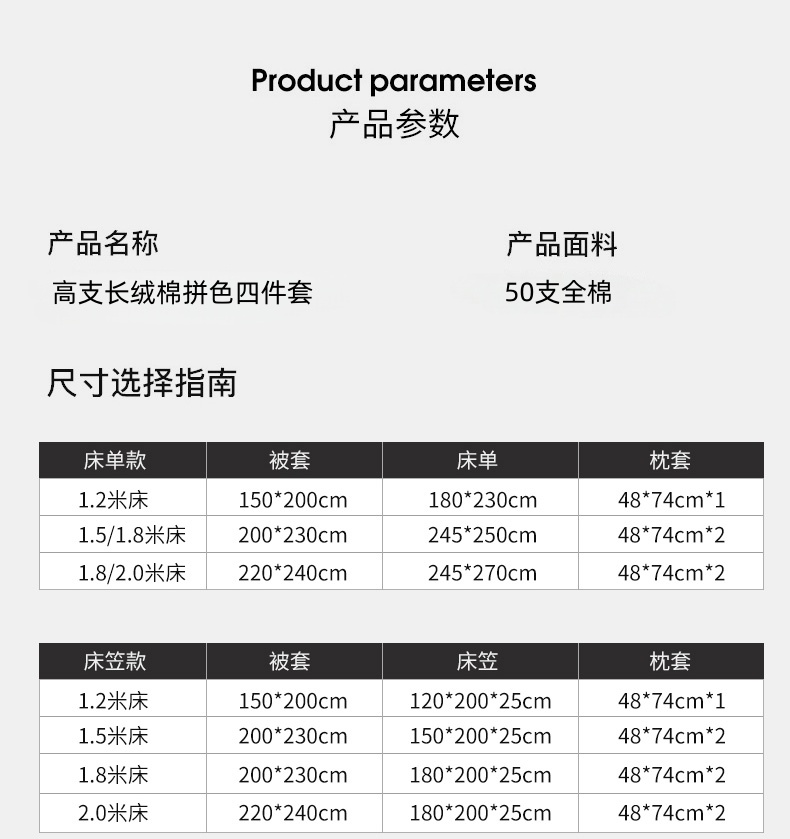 1.8m被套加大床笠款四件套(220*240cm) | ¥165.00 |