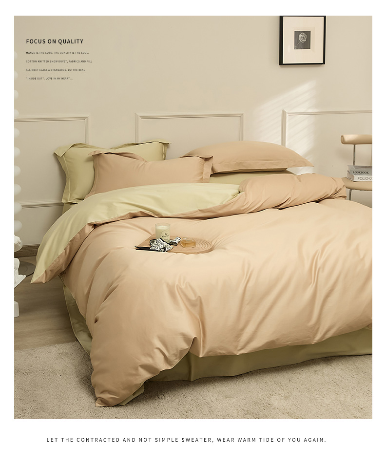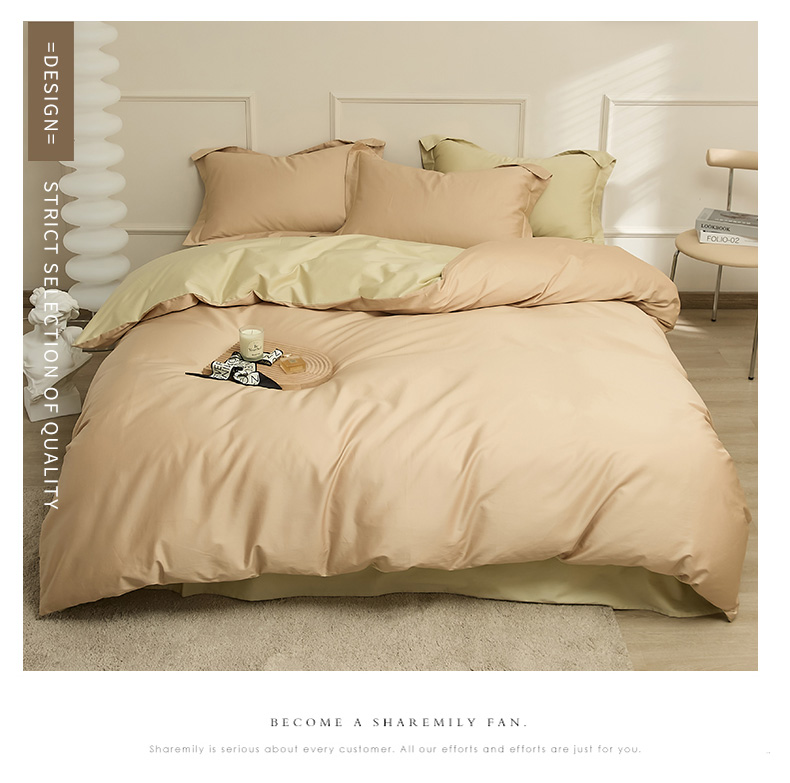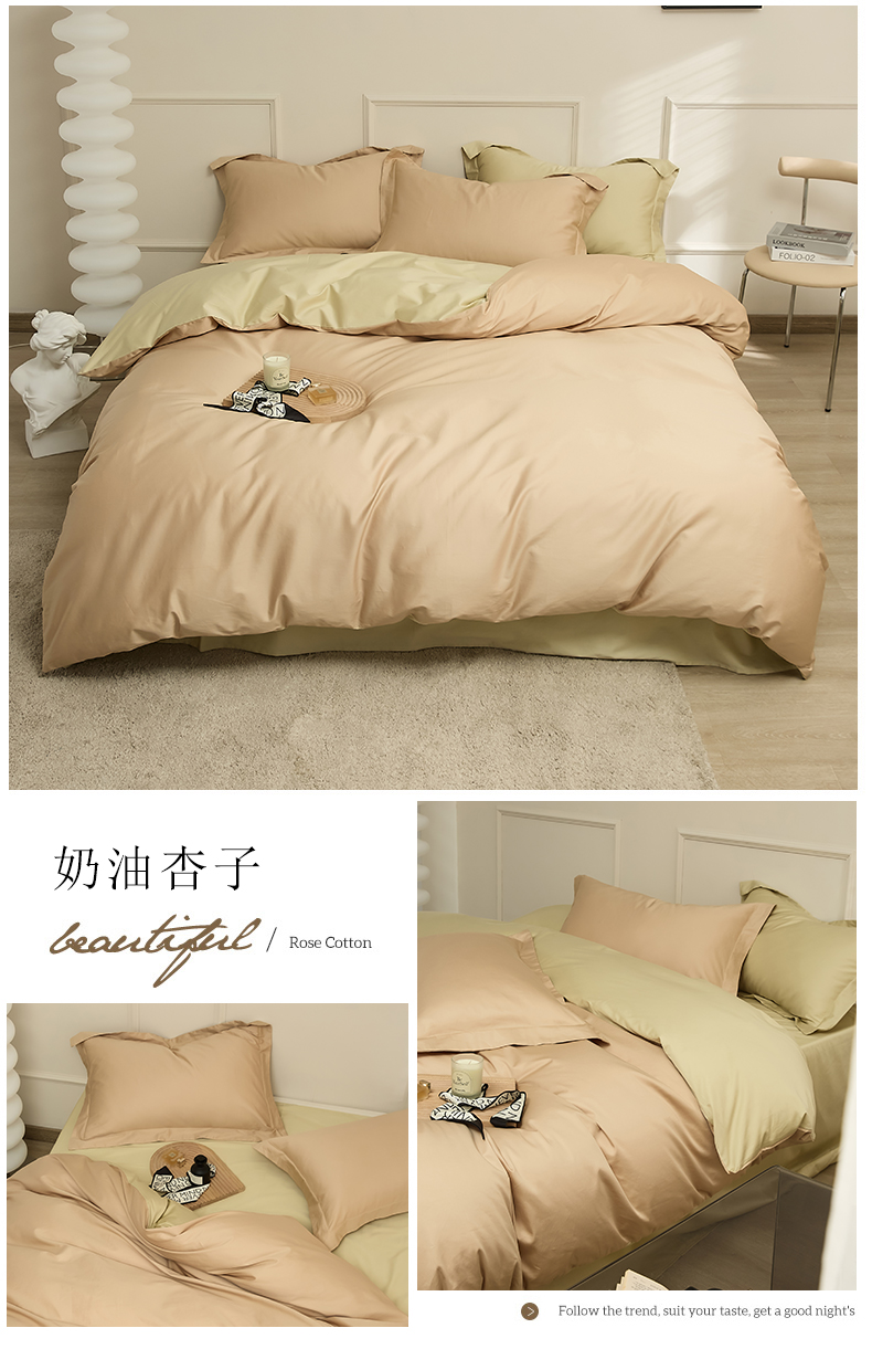 当前位置: 91家纺网 > 商品网购 > 床品套件 > 四件套 > 长绒棉四件套 > 新款100S长绒棉双拼四件套 奶油杏子