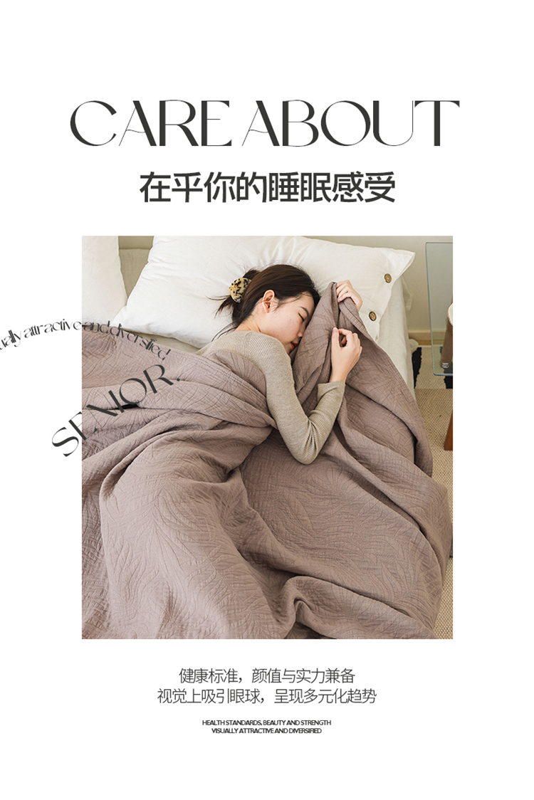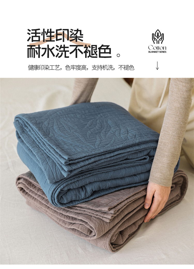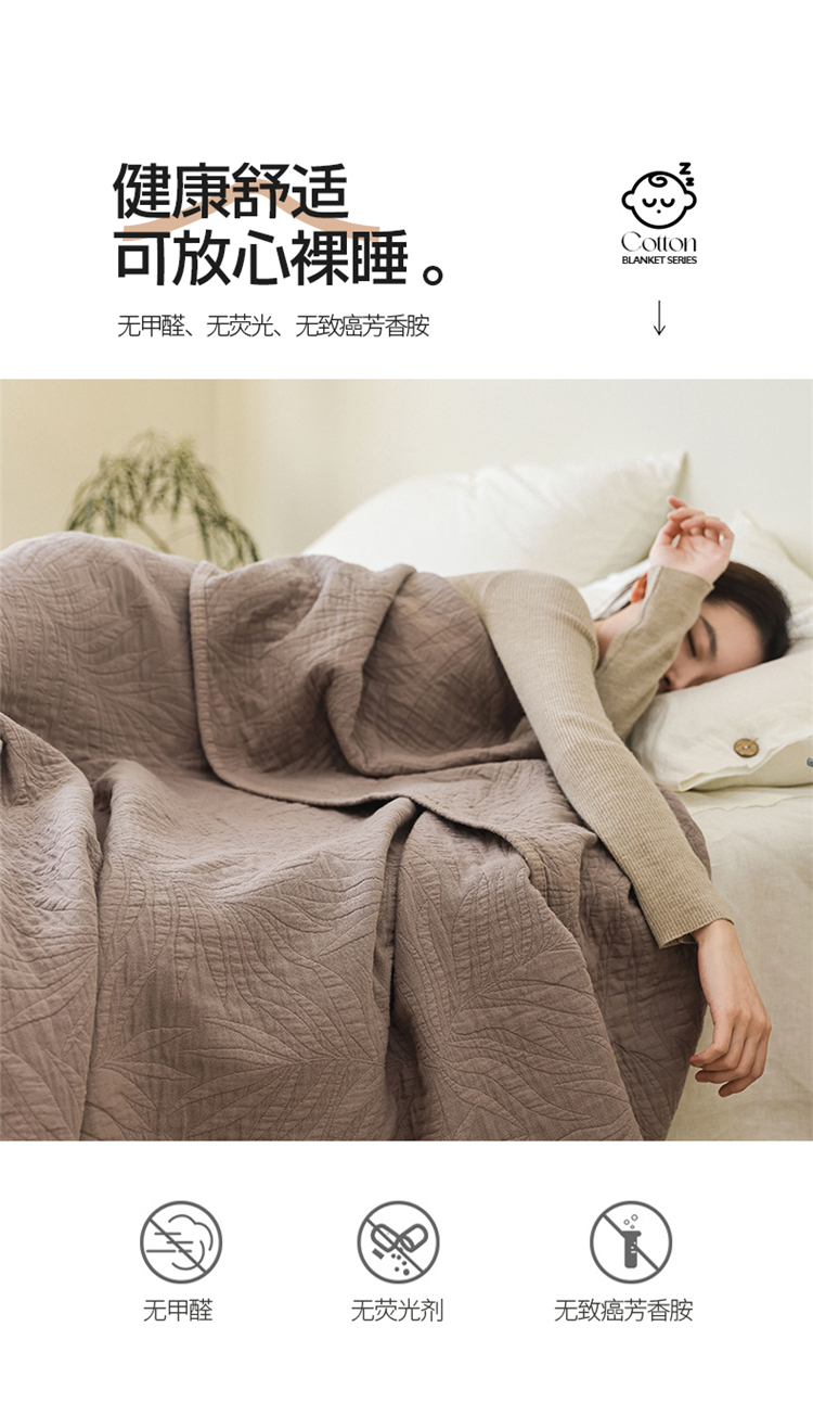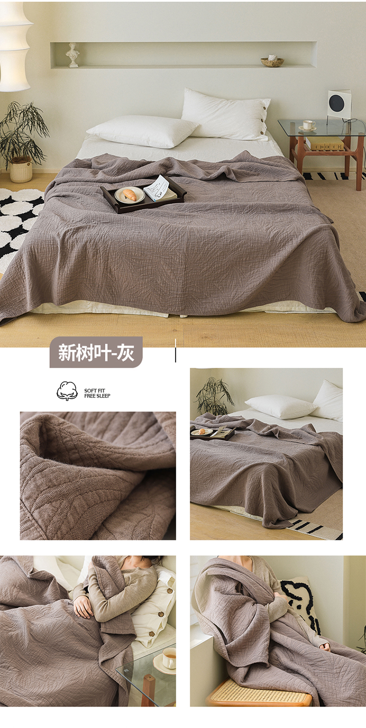 商品名称:雯雨家纺 2023新款全棉拼色纱布毛巾被 新树叶-灰