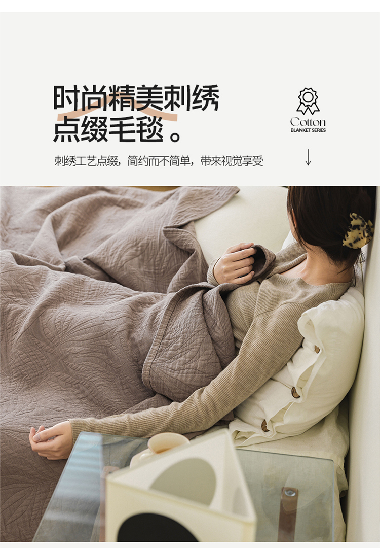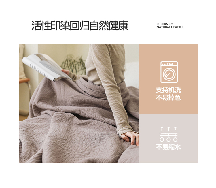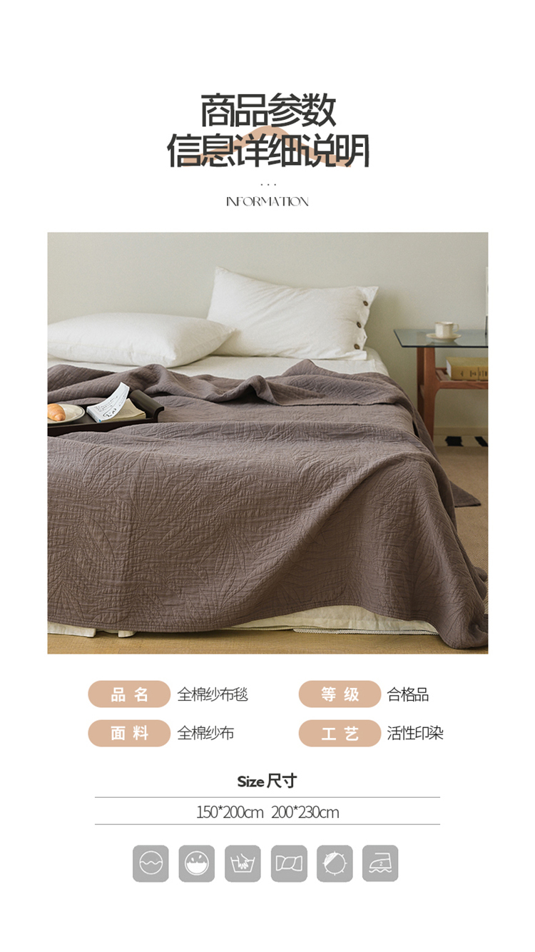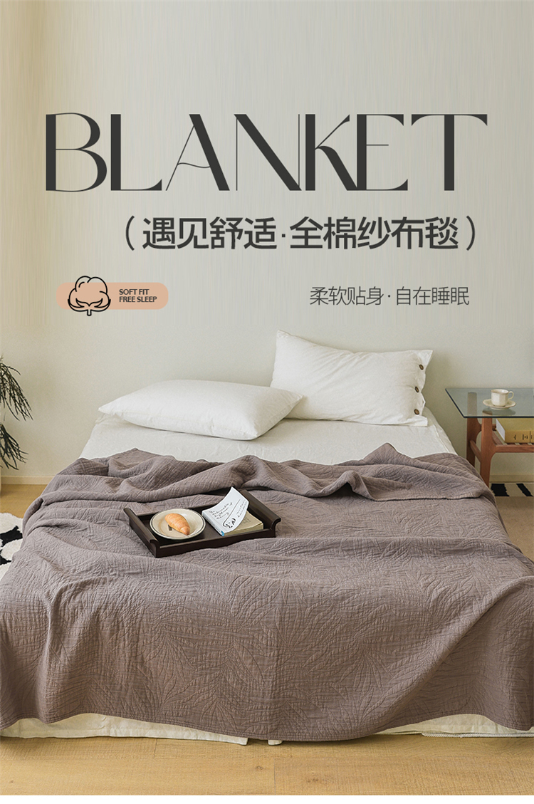 商品名称:雯雨家纺 2023新款全棉拼色纱布毛巾被 新树叶-灰