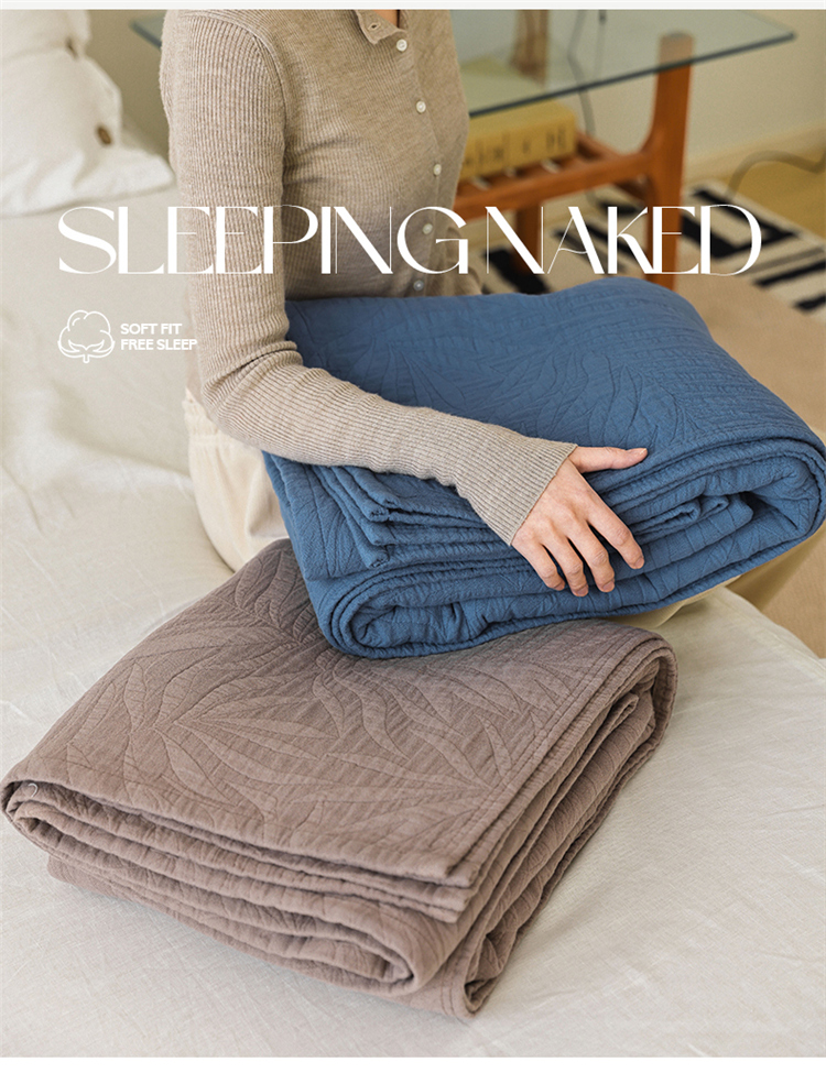 雯雨家纺 2023新款全棉拼色纱布毛巾被 新树叶-灰