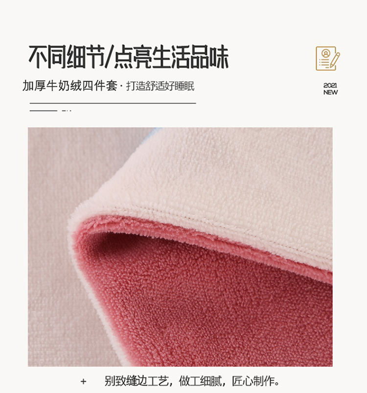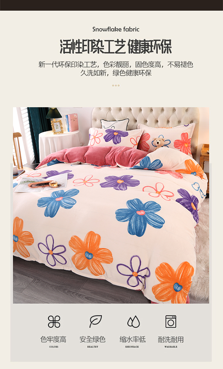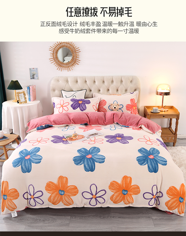 商品名称:爱上家居 2023新款温暖亲肤加厚牛奶绒四件套 花开朵朵-粉