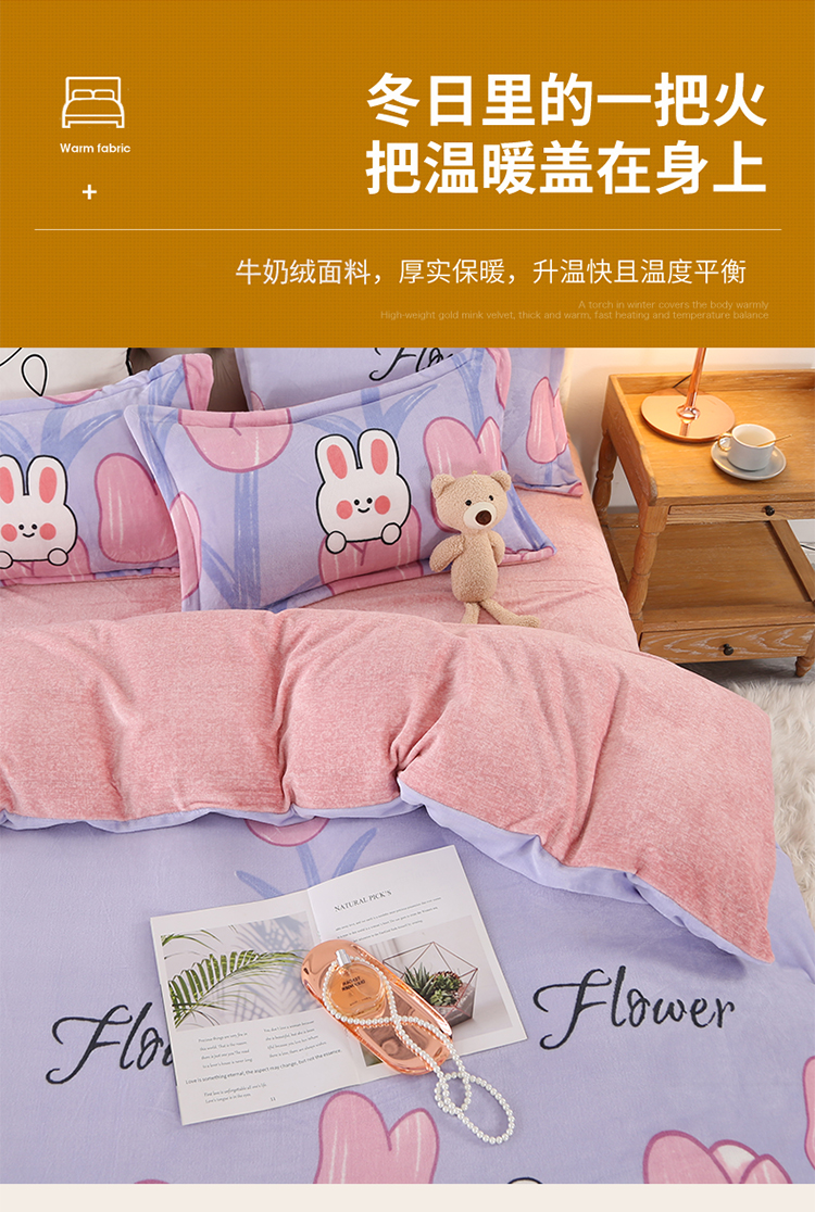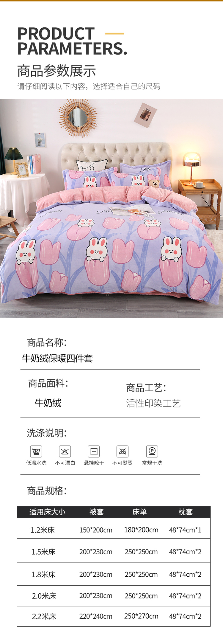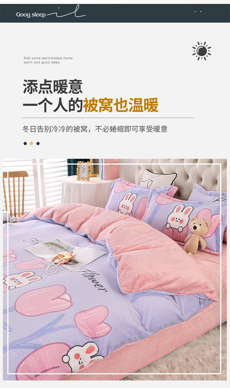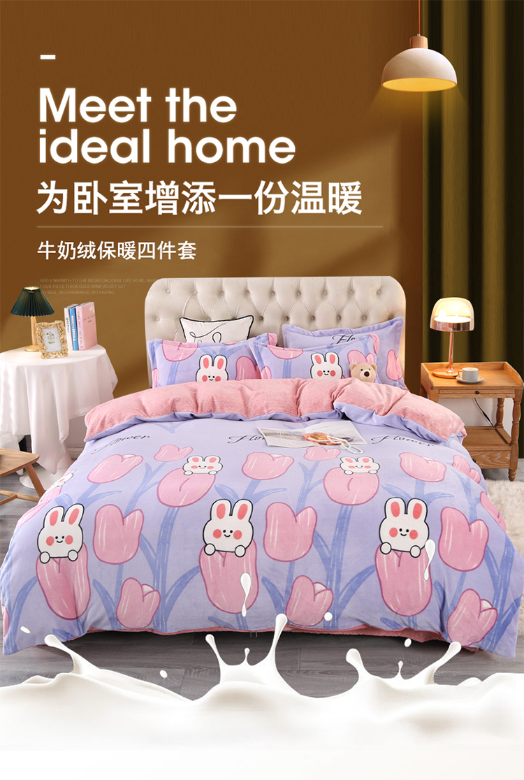 商品名称:爱上家居 2023新款温暖亲肤加厚牛奶绒四件套 萌萌兔-蓝