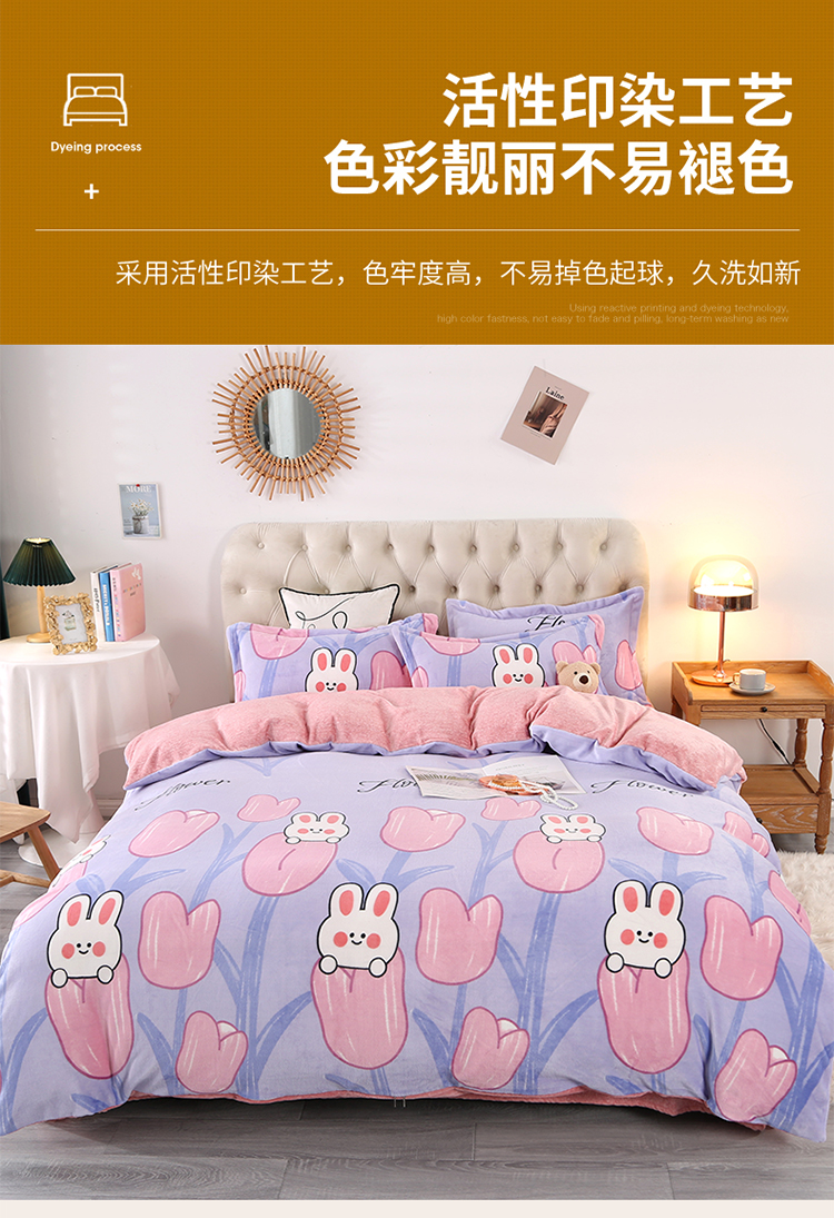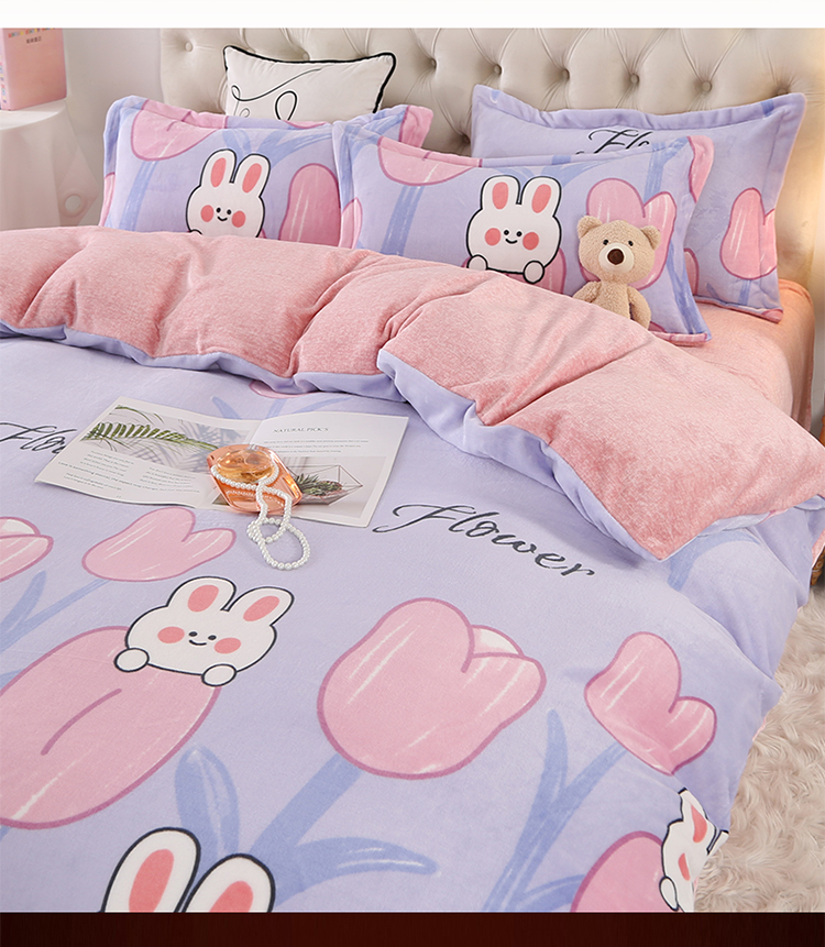(总)爱上家居 2024新款AB版兔兔绒牛奶绒四件套,粉色,灰色,绿色,驼色,紫色