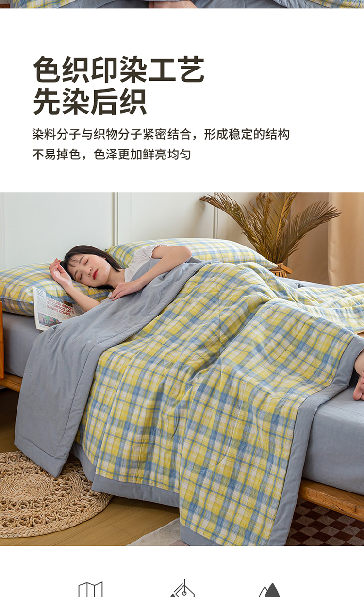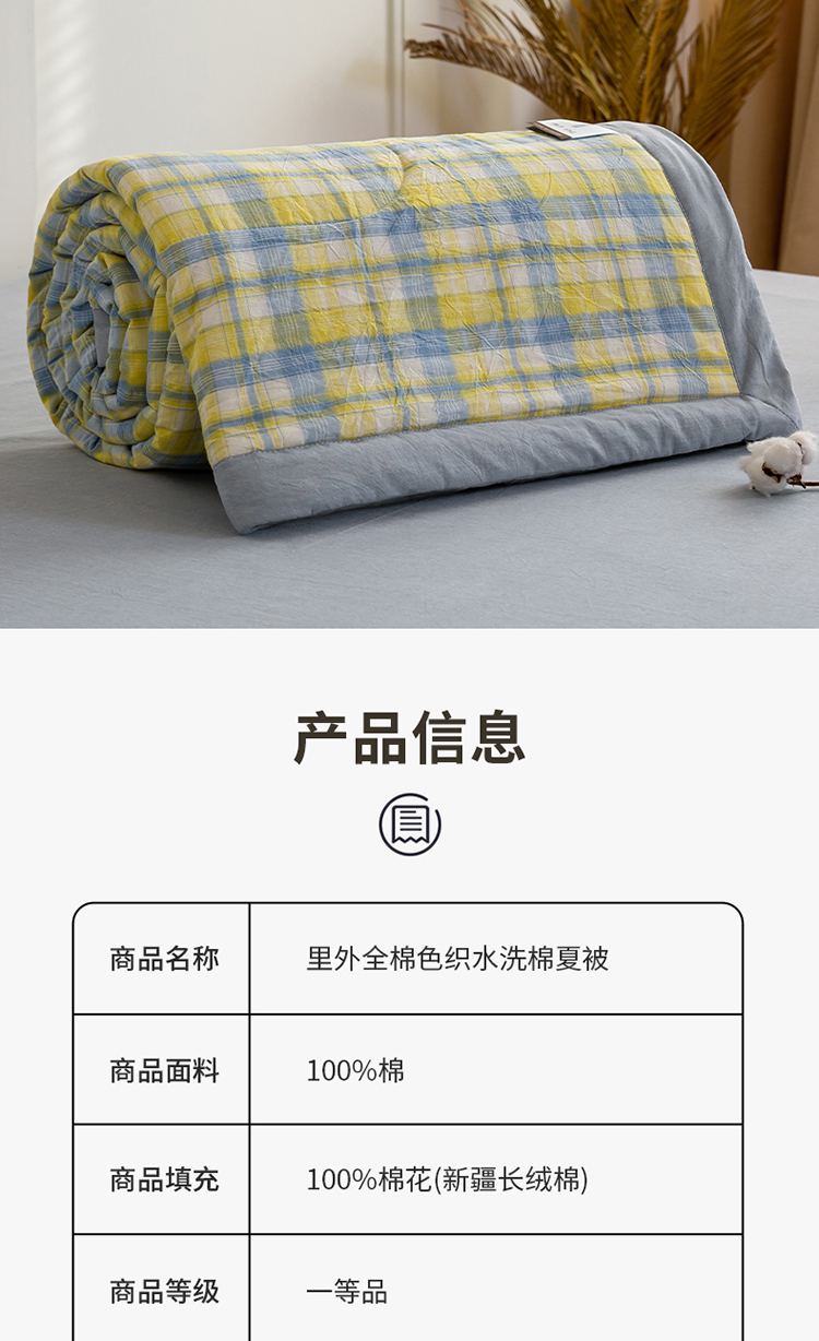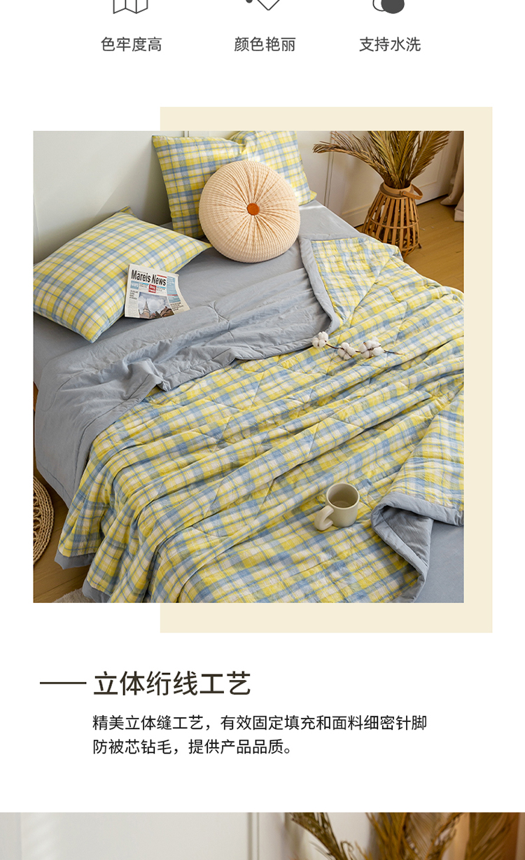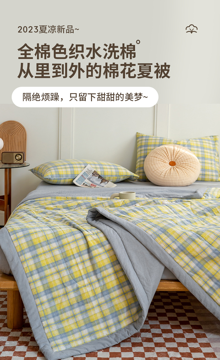 • 91家纺网 家纺一手货源 找家纺 鸣升新疆长绒棉全棉花色织水洗棉夏被四件套 星空黄