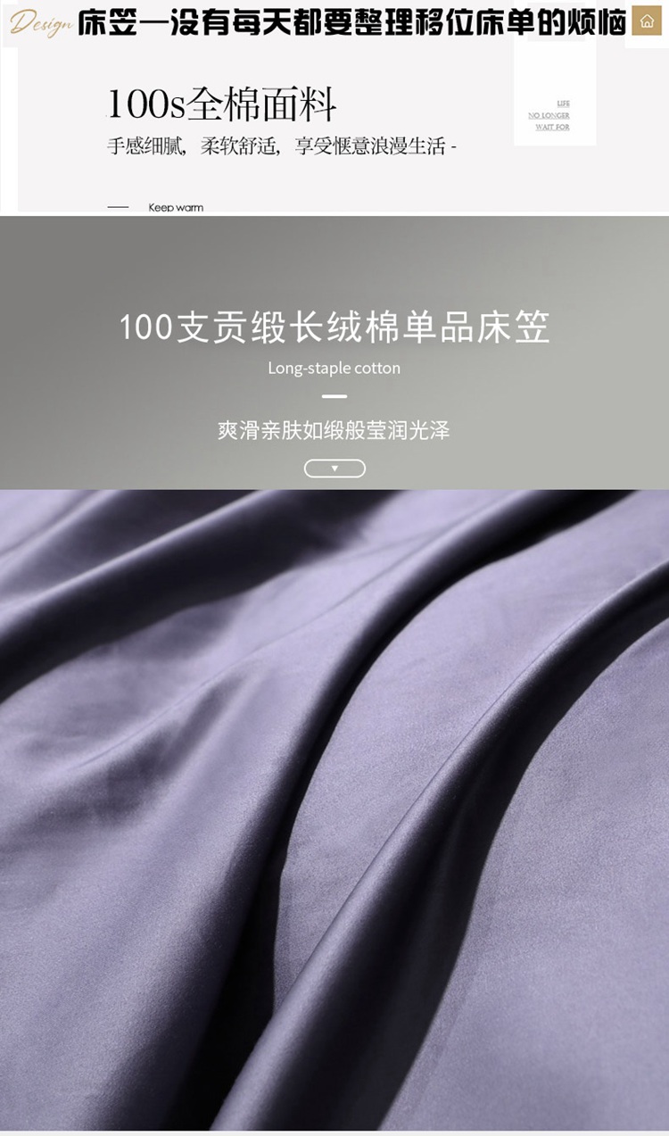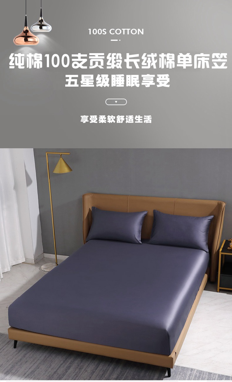 商品名称:晶缦家纺 2023新款纯棉50支双股全棉贡缎长绒棉纯色单床笠单件单品 纯沐-深度灰