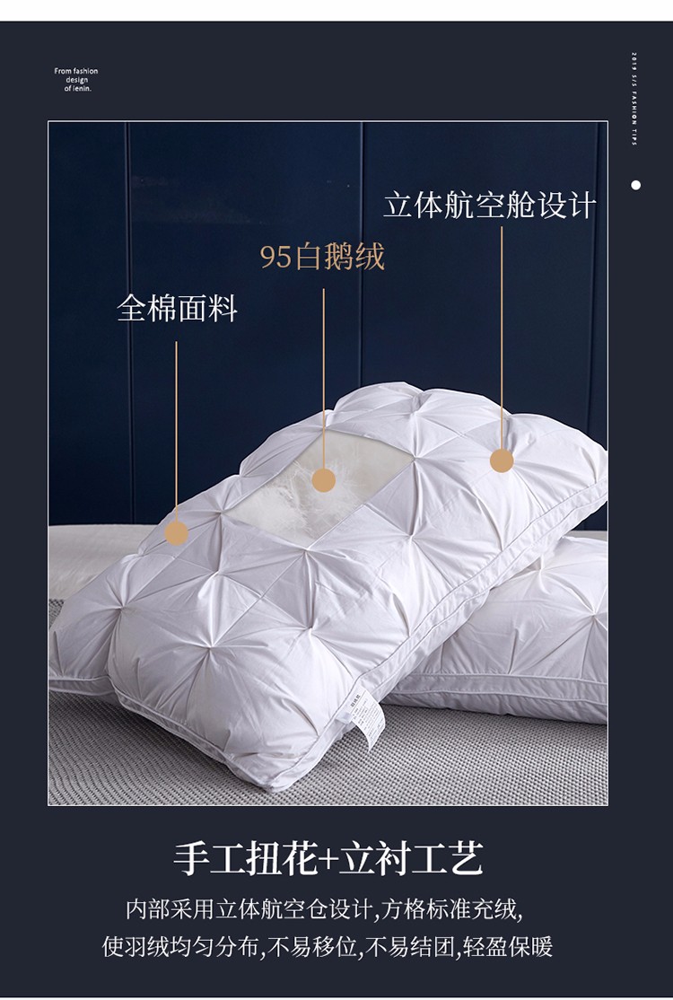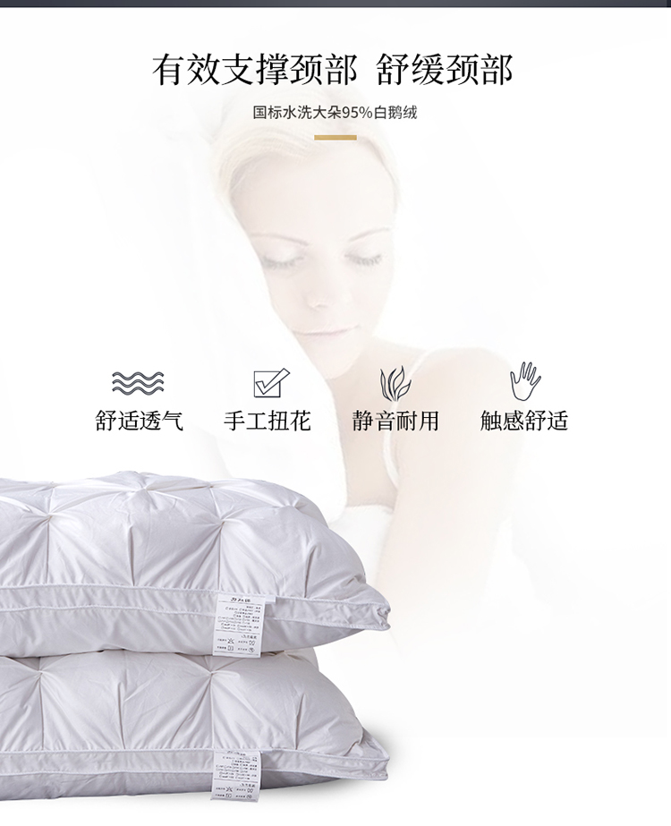 当前位置: 91家纺网 > 商品网购 > 枕头/枕芯/保健枕/颈椎枕 > 普通枕芯 > 缔莱 2023新款95白鹅绒羽绒枕头枕芯 白色48*74cm高枕