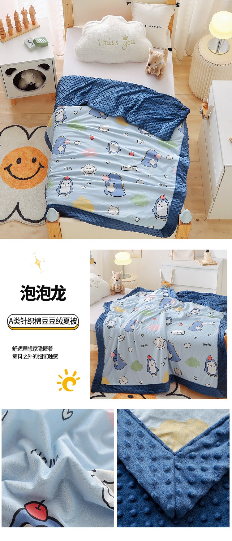 (总)嗨生活 2025新款针织棉豆豆被儿童豆豆被幼儿园豆豆被被子被芯,动物乐园,开心女孩,开心宇航员,恐龙宝宝,恐龙派对,蓝色挖掘,萌小兔,熊猫之家,雪地狗,叠拍图