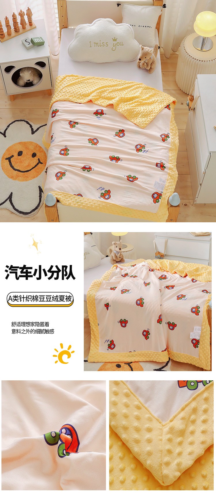 商品名称:2023新款针织棉豆豆绒盖毯 夏被 幼儿园 儿童被子 汽车小分队