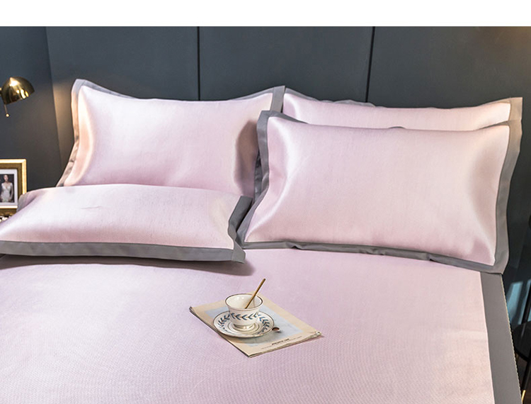(总)印季家纺 2025新款纯色加密冰藤床裙凉席,粉色,灰色,咖啡,浅紫,水绿,天蓝