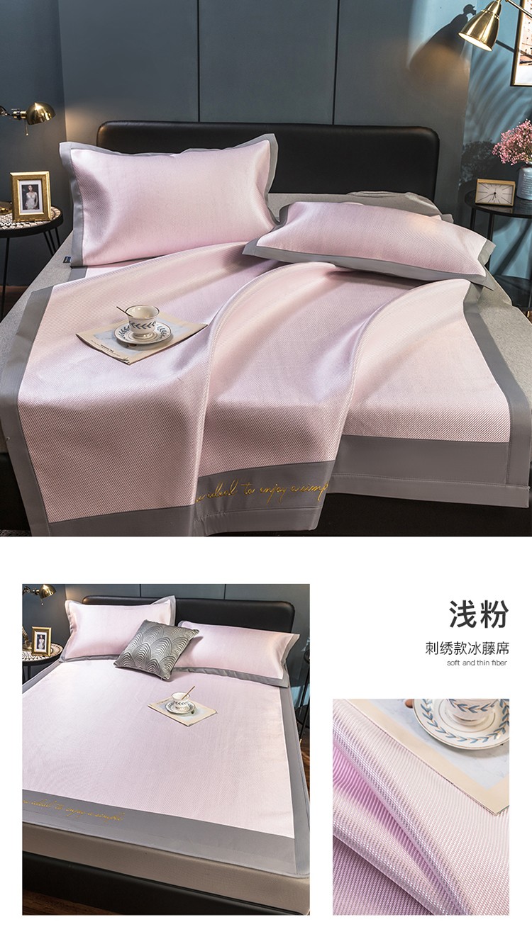 印季 2023新款刺绣款冰藤席 浅粉