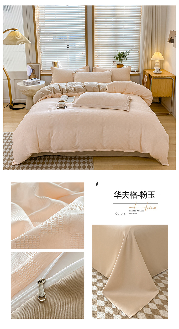 当前位置: 91家纺网 > 商品网购 > 床品套件 > 四件套 > 化纤活性四件套 > 骏腾家纺 2023新款华夫格冰丝四件套 华夫格-粉玉