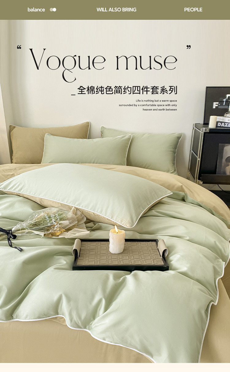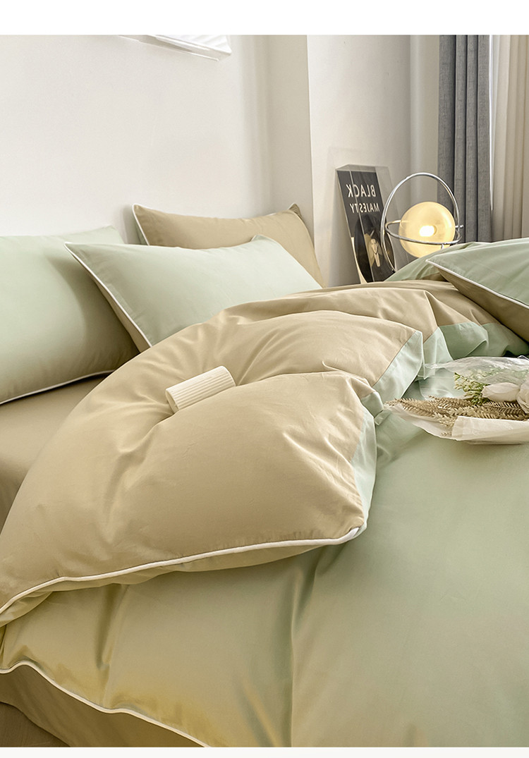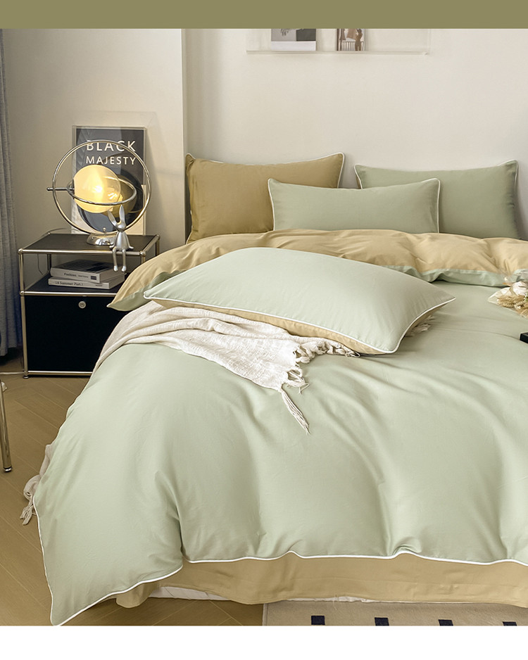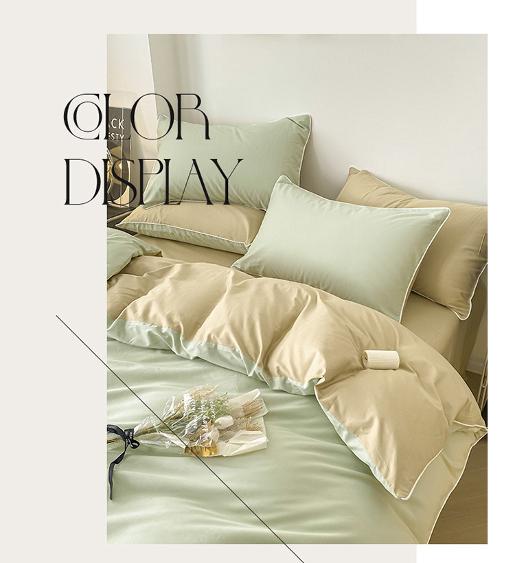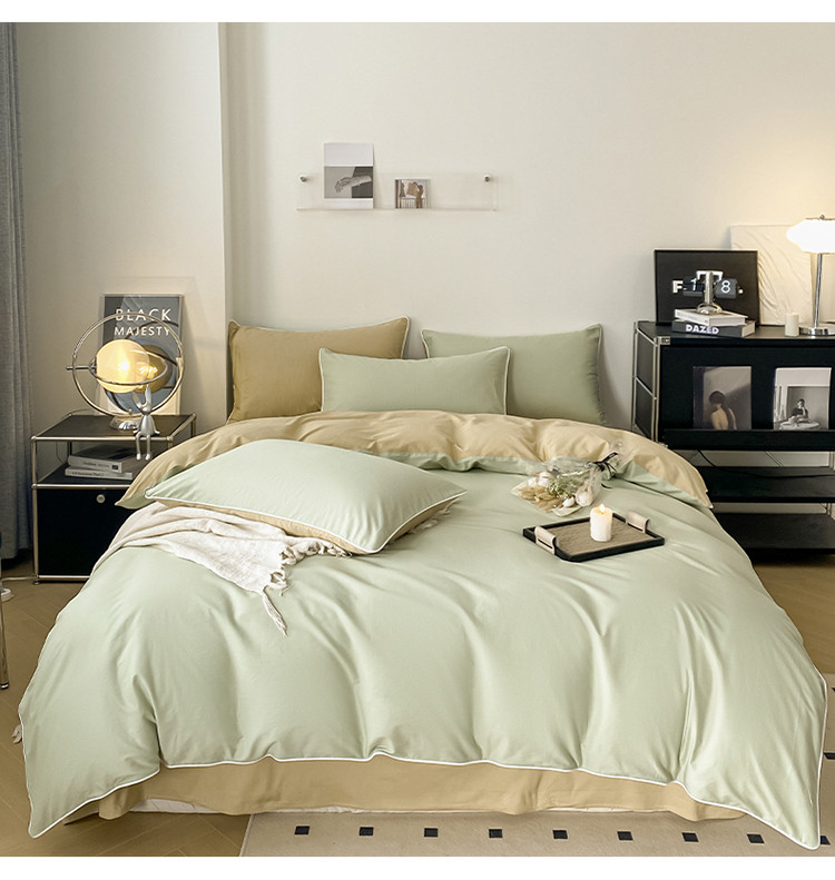 商品名称:万盛家纺 2025新款全棉纯棉纯色拼色简约四件套 抹茶绿-黄