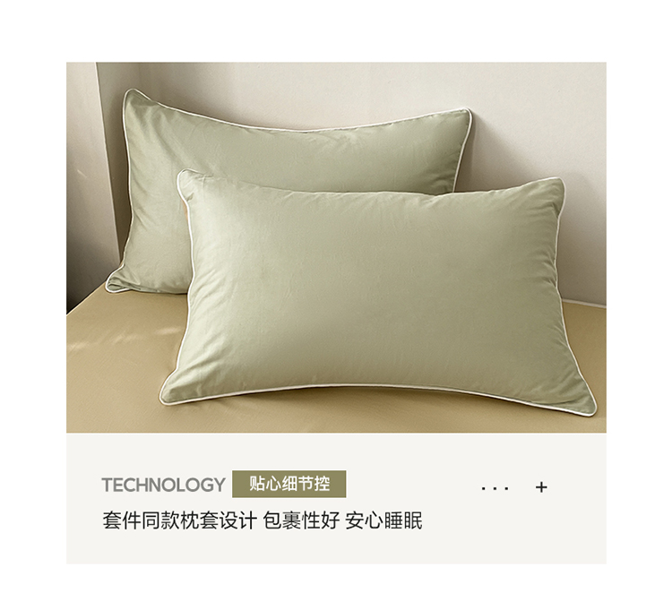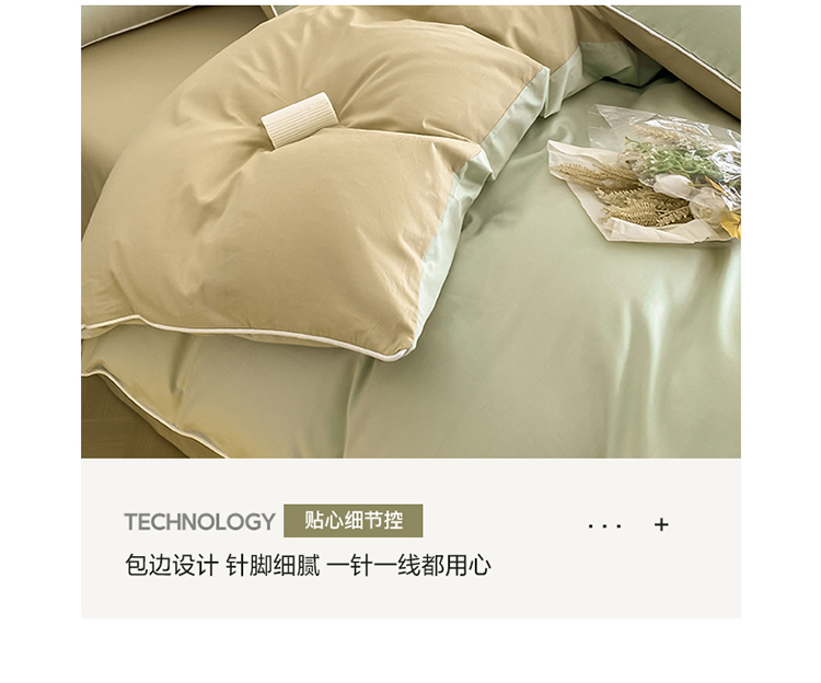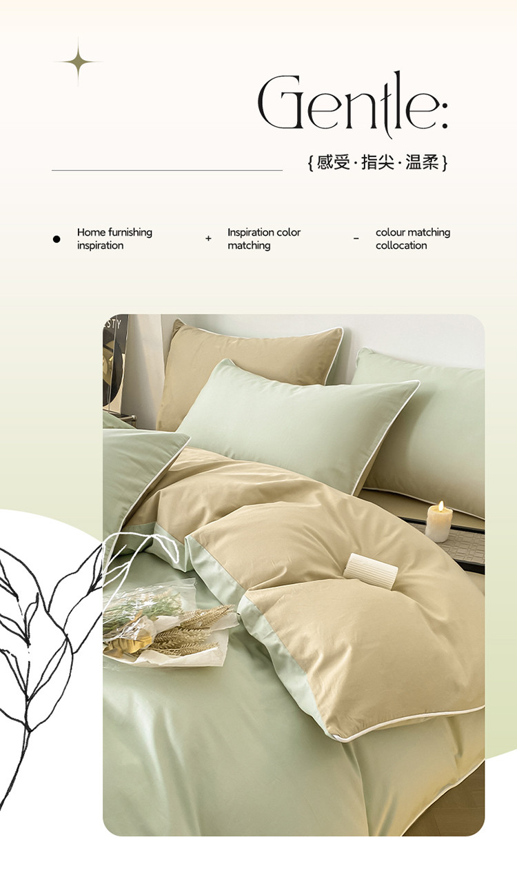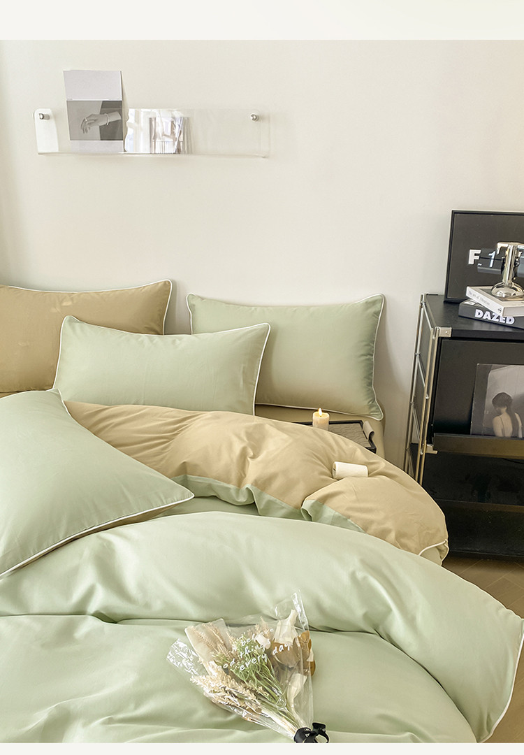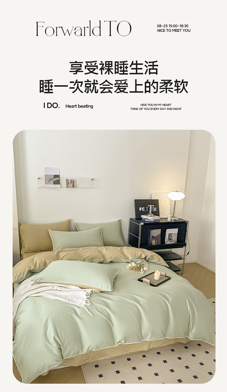 商品名称:万盛家纺 2025新款全棉纯棉纯色拼色简约四件套 抹茶绿-黄