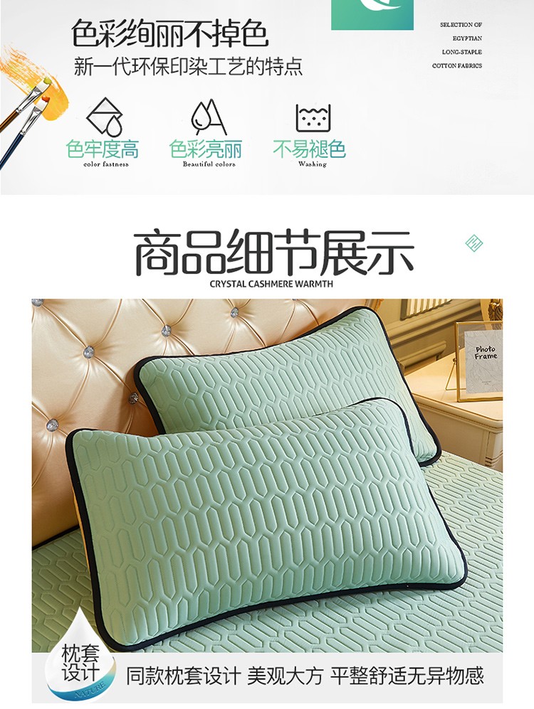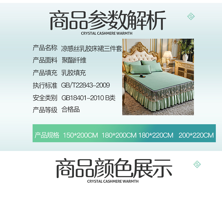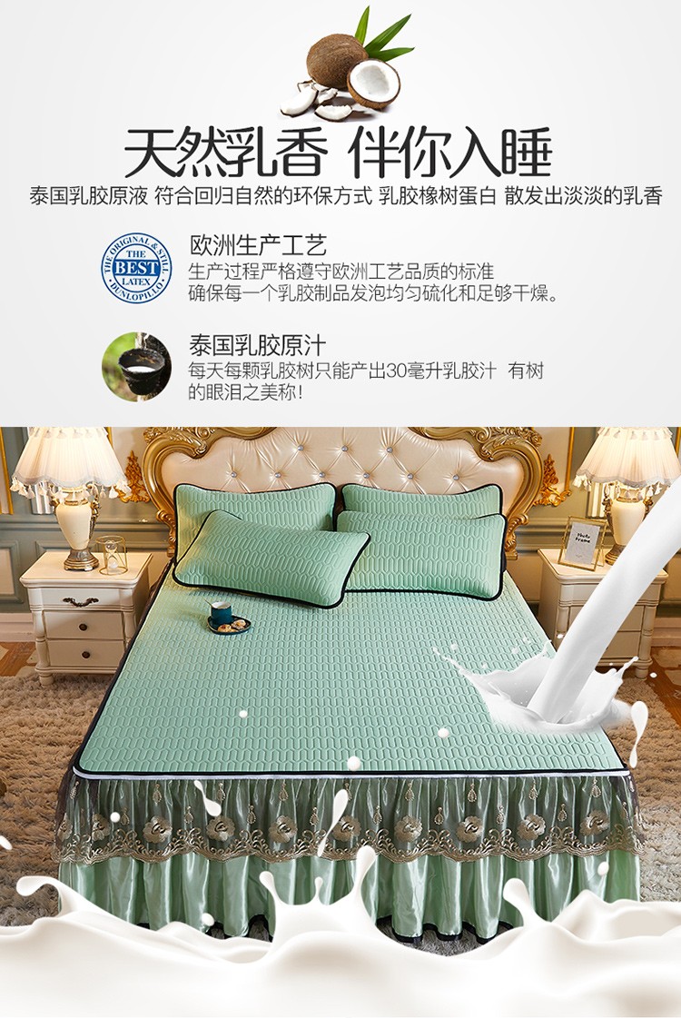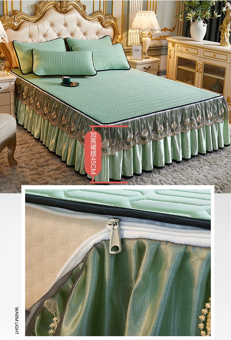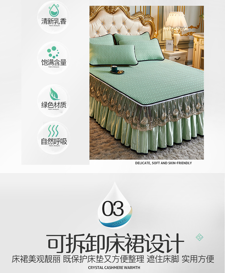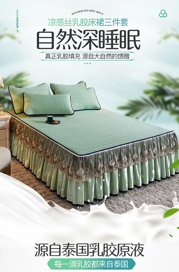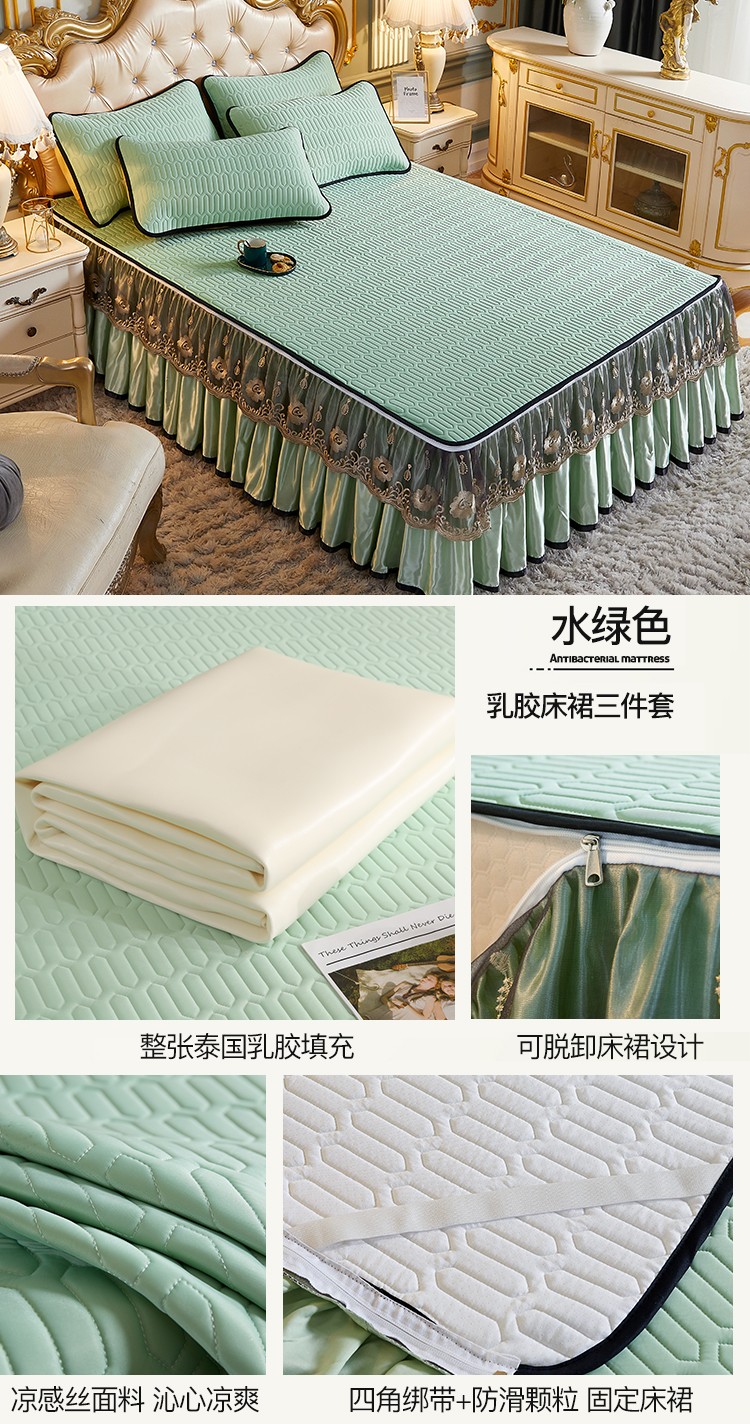 商品名称:网红馆 2025新款凉感丝黑边乳胶床裙三件套 水绿色