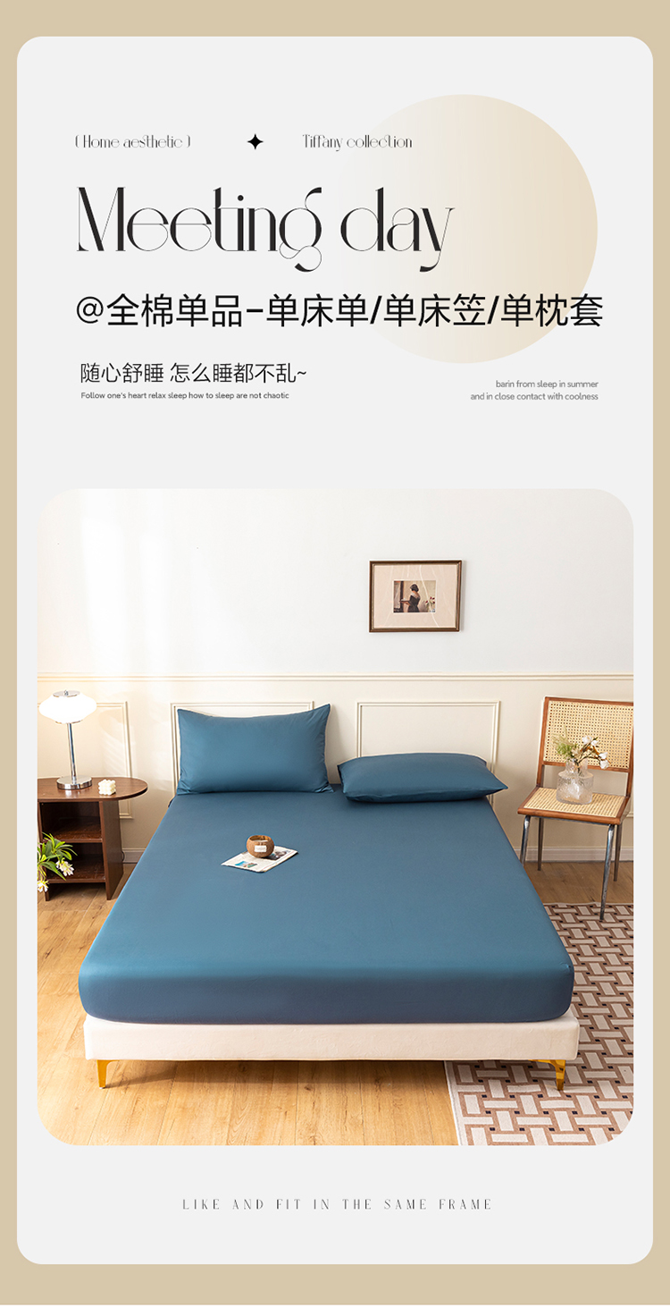 莱登卡奴 2023新款全棉单品-床笠-床单-枕套 纯色-牛仔蓝