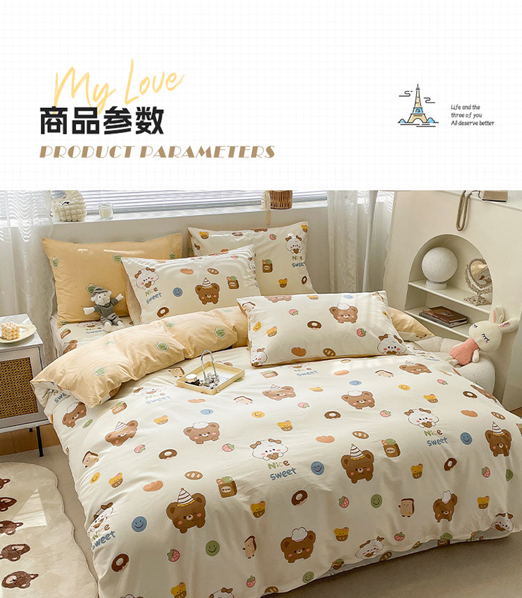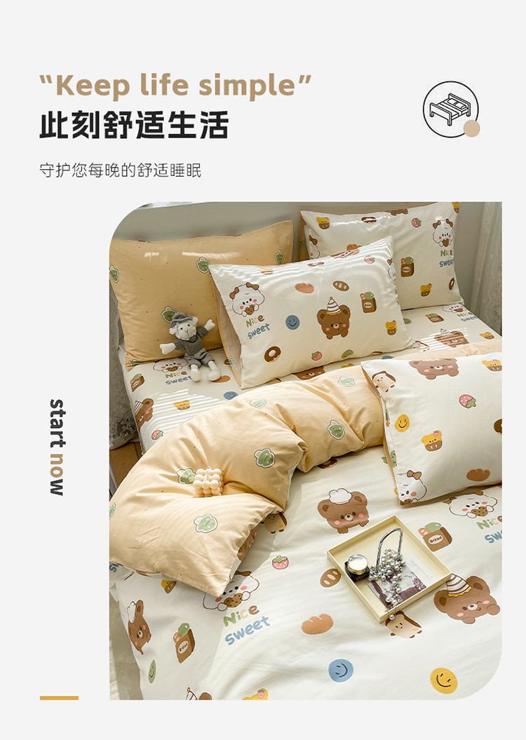 商品名称:绵庭 2023新款12868全棉ins小清新印花四件套 熊宝宝