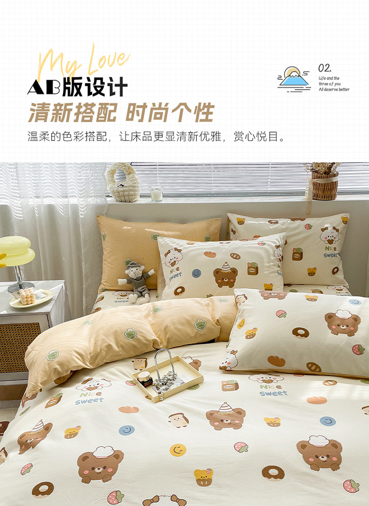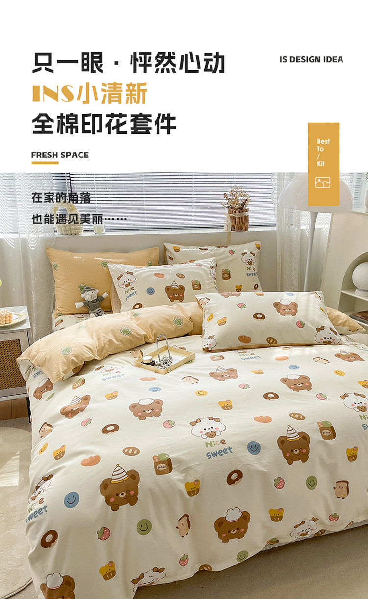 绵庭 2023新款12868全棉ins小清新印花四件套 熊宝宝