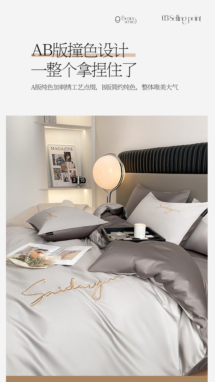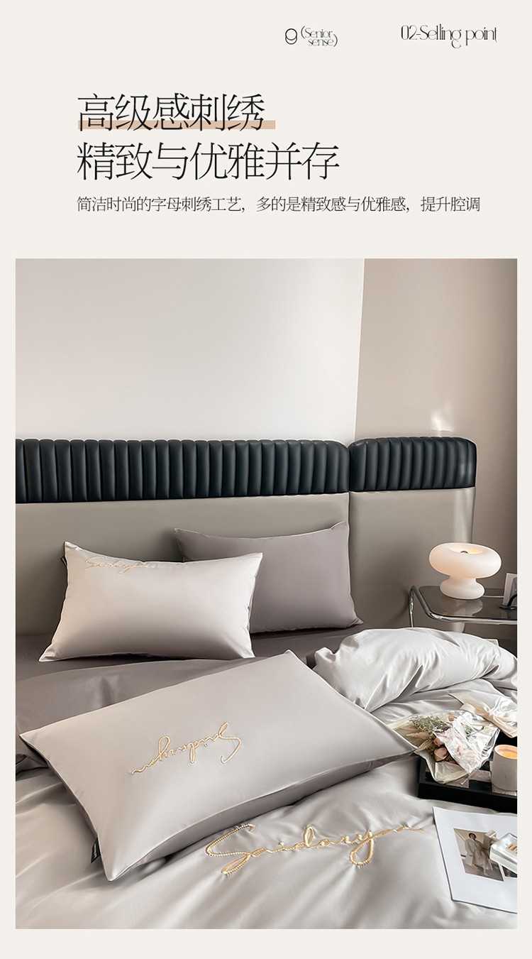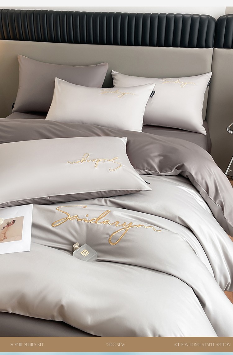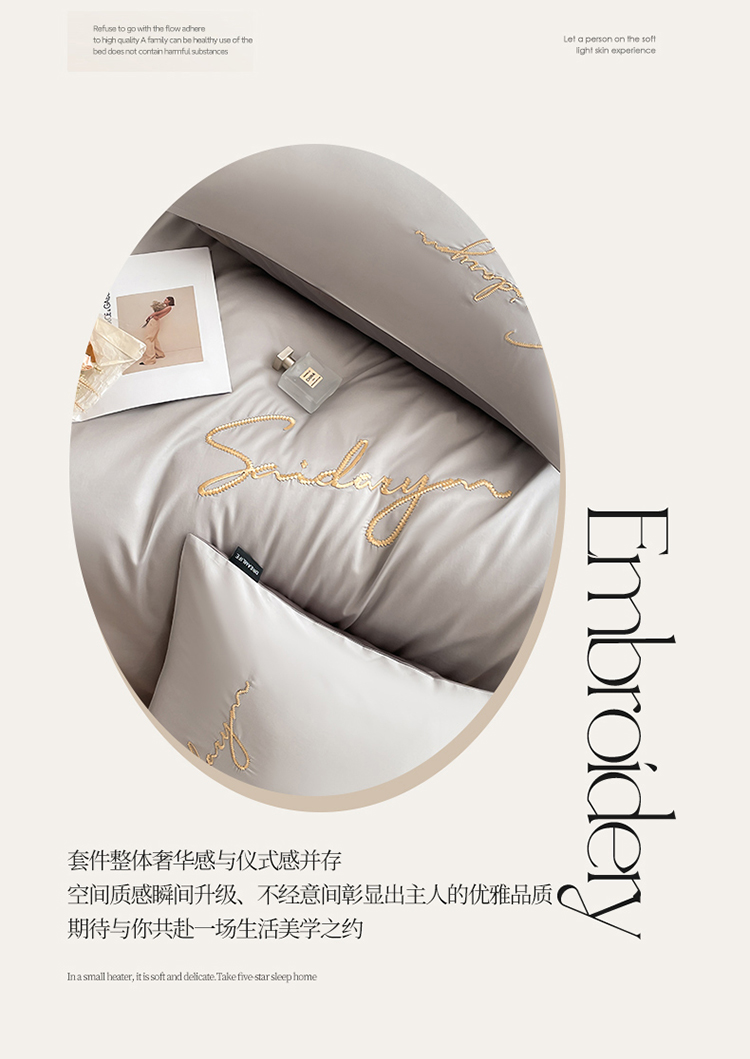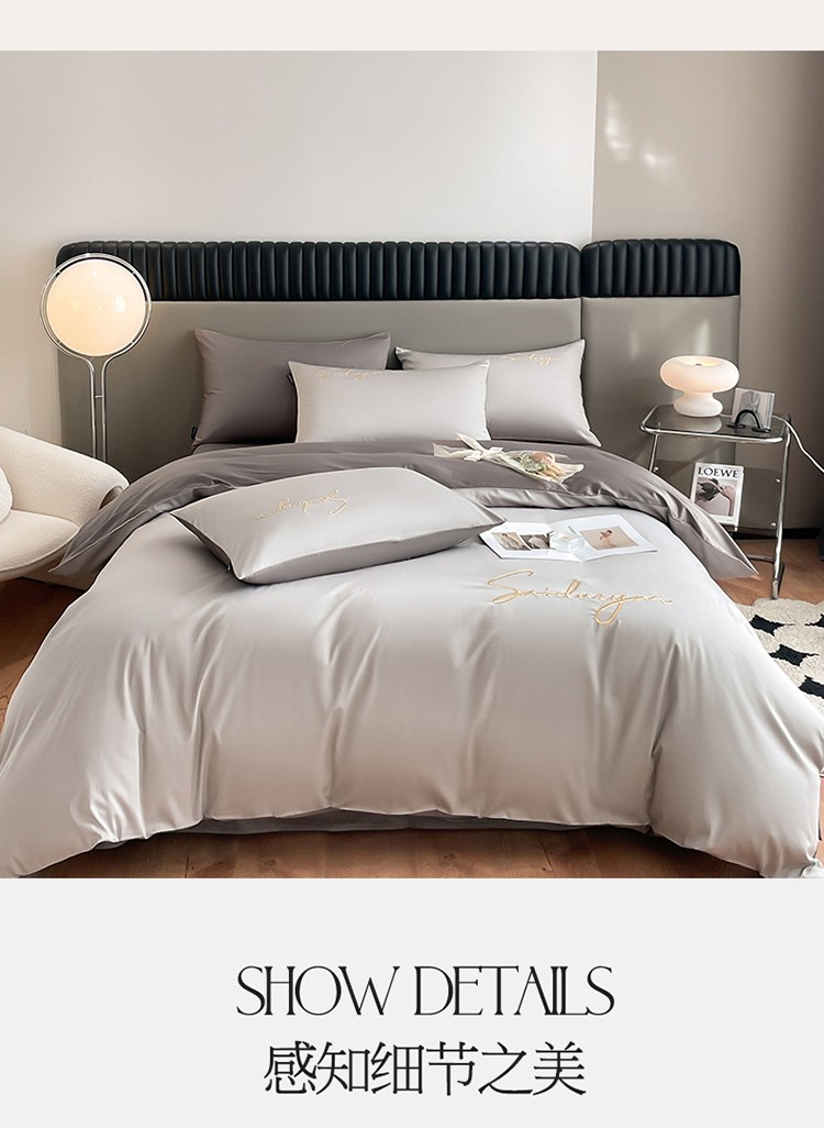 商品名称:蓝米卡夫 2024全棉高级感长绒棉刺绣索菲系列-四件套 索菲-山灰居士