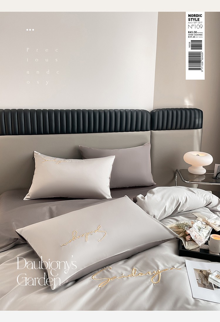蓝米卡夫 2024全棉高级感长绒棉刺绣索菲系列-四件套 索菲-山灰居士