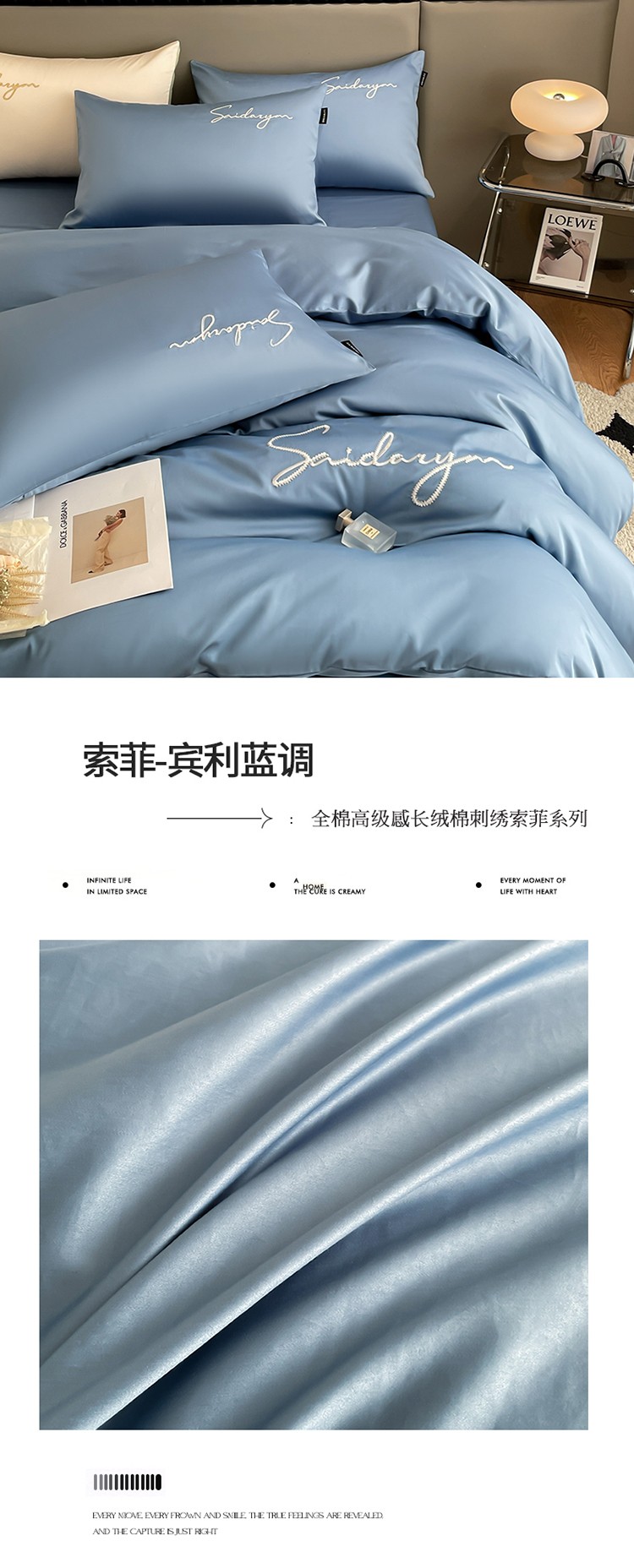 蓝米卡夫 2024全棉高级感长绒棉刺绣-索菲-单被套 索菲-宾利蓝调