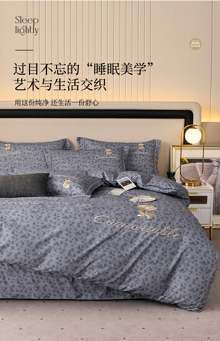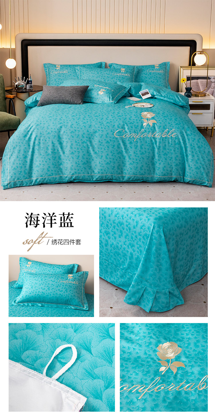 (总)优尚家纺 2026新款水洗天丝刺绣夏被夏被四件套,冰岛蓝,沧海兰,米咖色,蔷薇花,深冬灰,银灰色