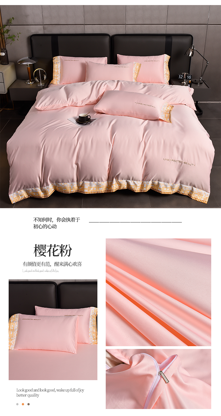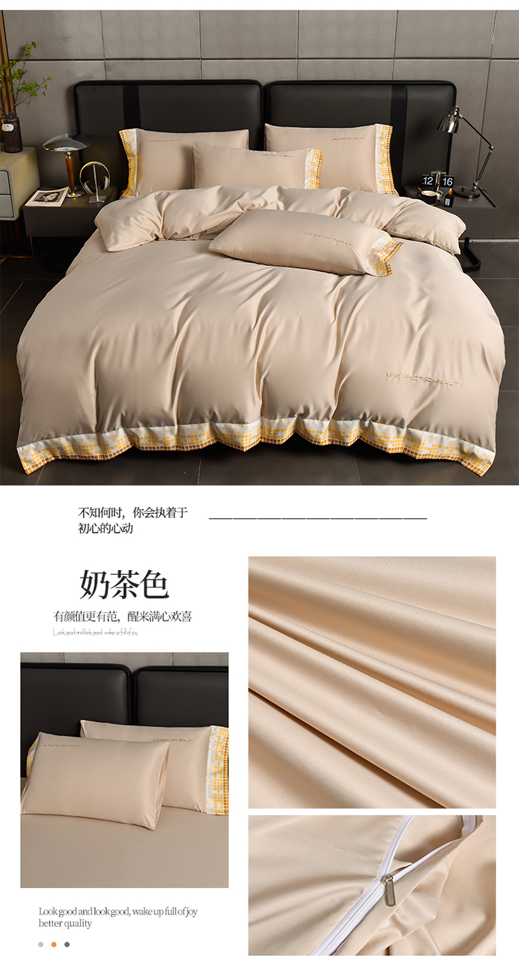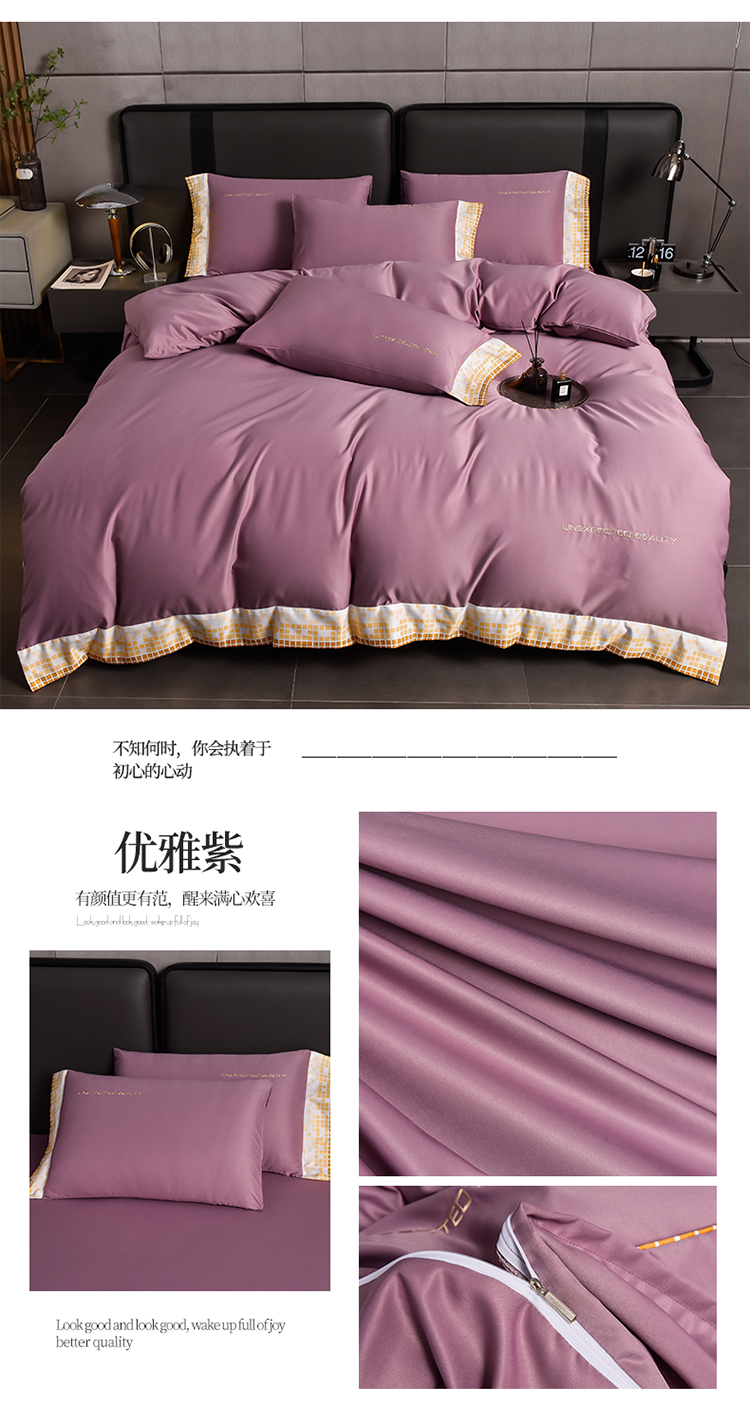 (总)米奈家居 2025新款贴边拼角100支新疆长绒棉四件套-诺拉,冰川蓝,豆蔻紫,落霞粉,奶杏棕,山茶红,松雾灰