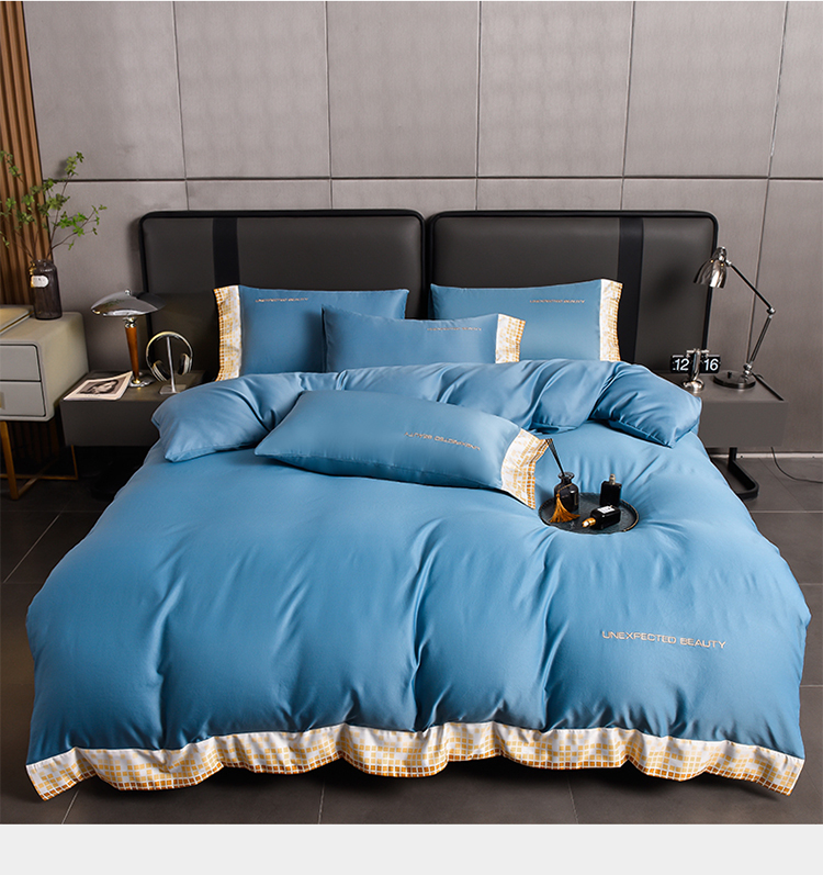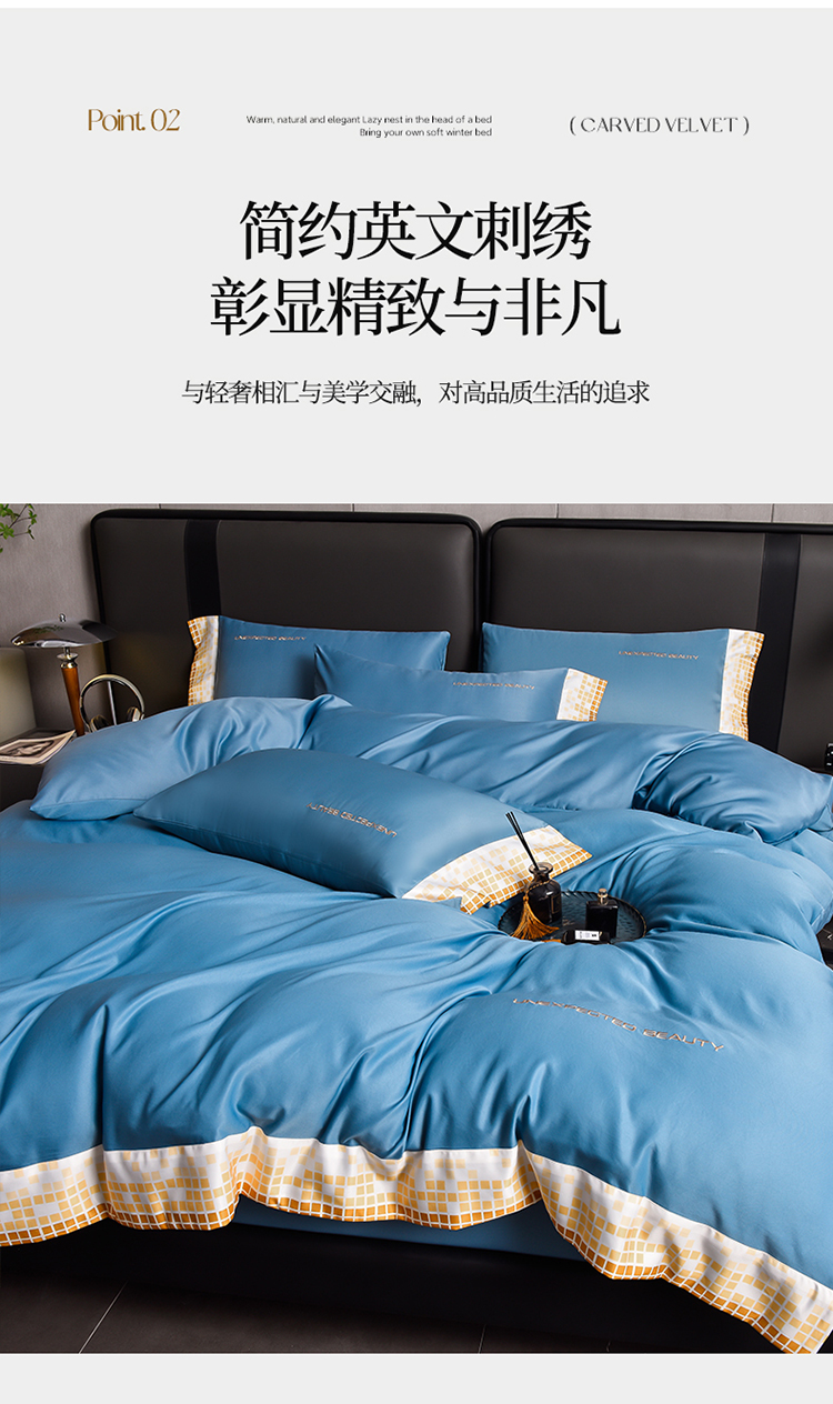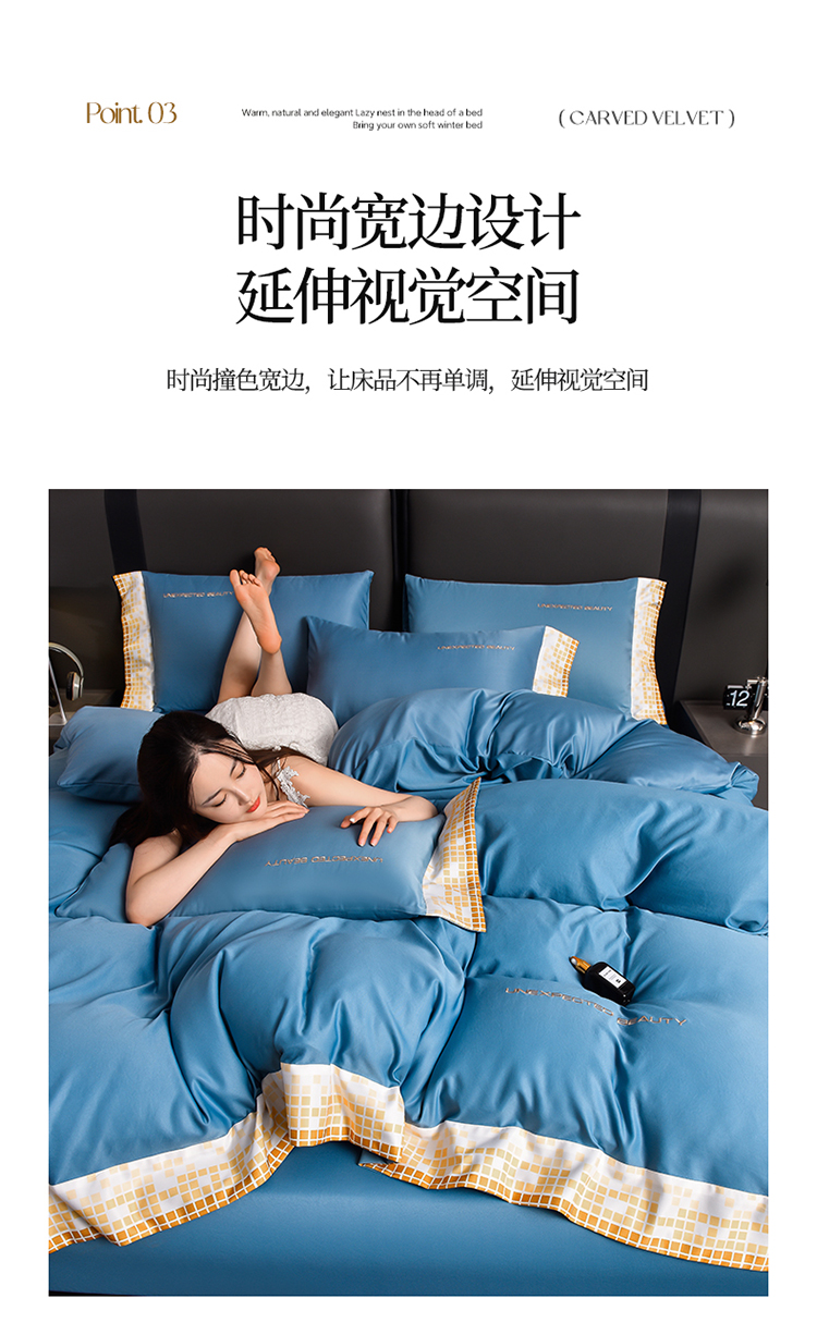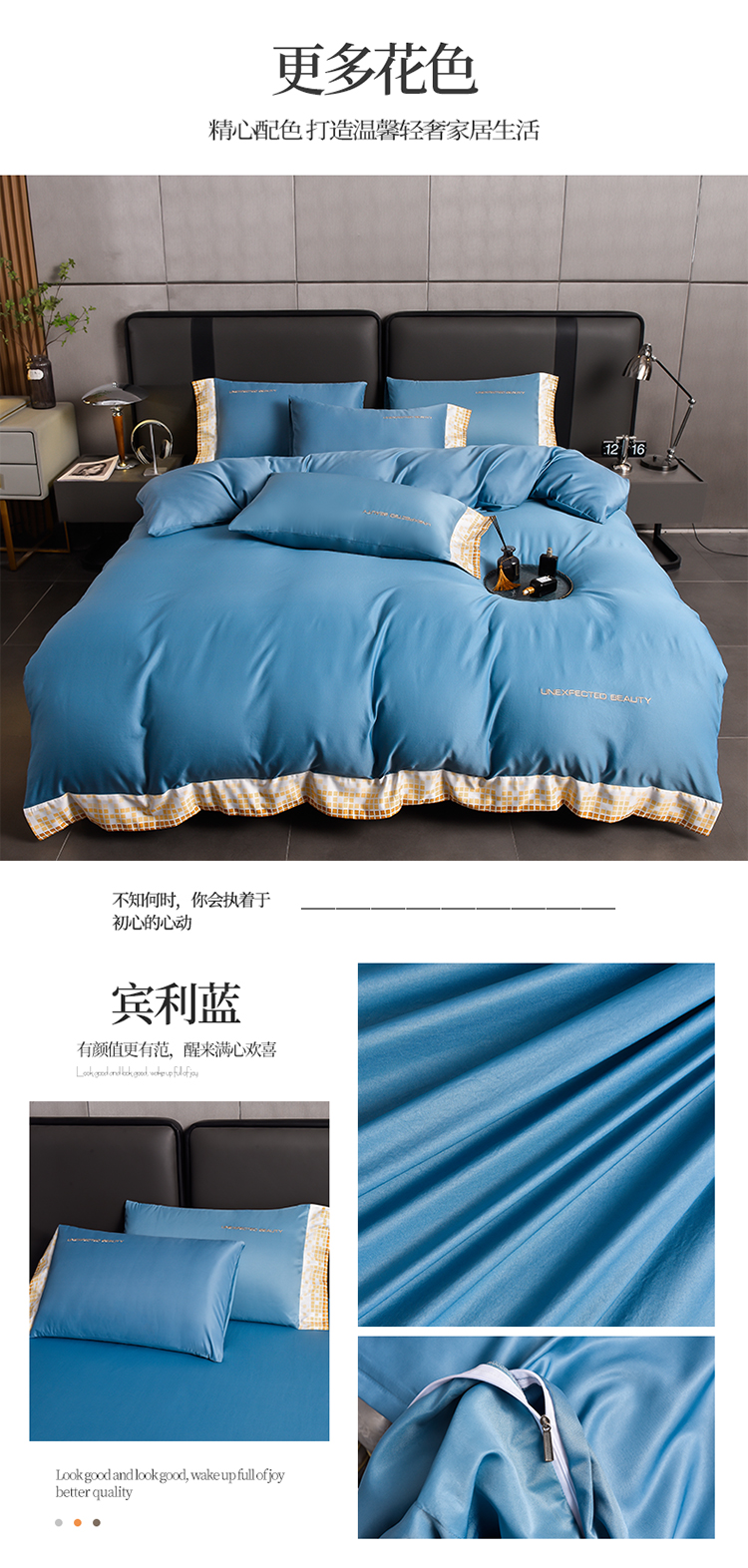 (总)米奈家居 2025新款贴边拼角100支新疆长绒棉四件套-诺拉,冰川蓝,豆蔻紫,落霞粉,奶杏棕,山茶红,松雾灰