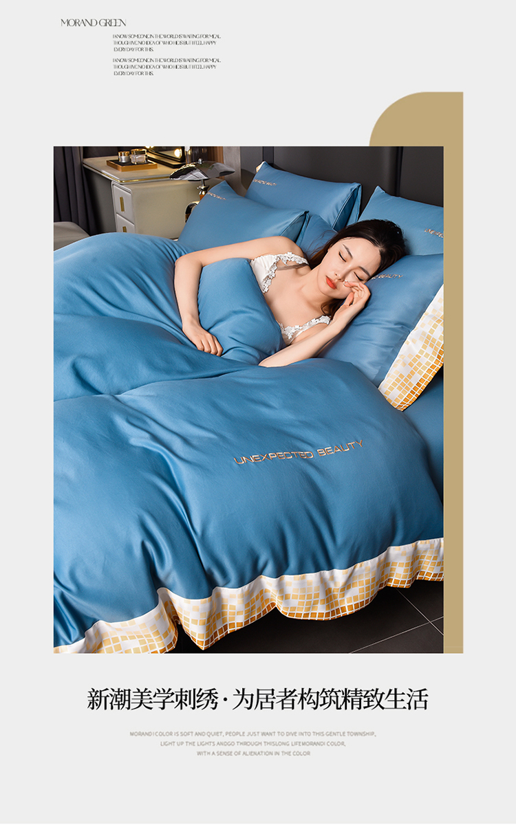 (总)米奈家居 2024新款长绒棉纯棉刺绣四件套-罗琳-简约风,冰川灰,湖蓝,蜜桃粉,藕粉,香槟,香芋紫,象牙白
