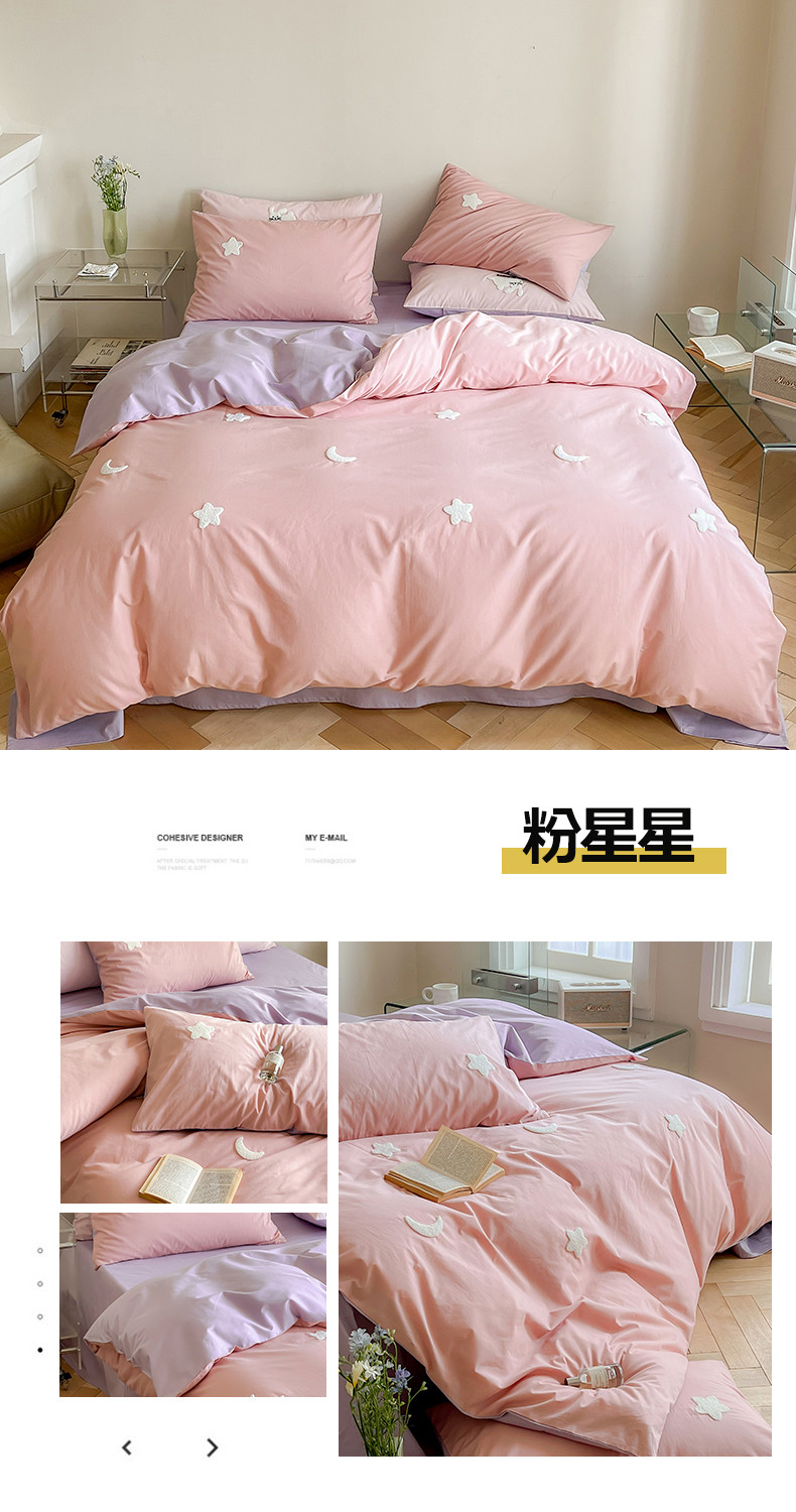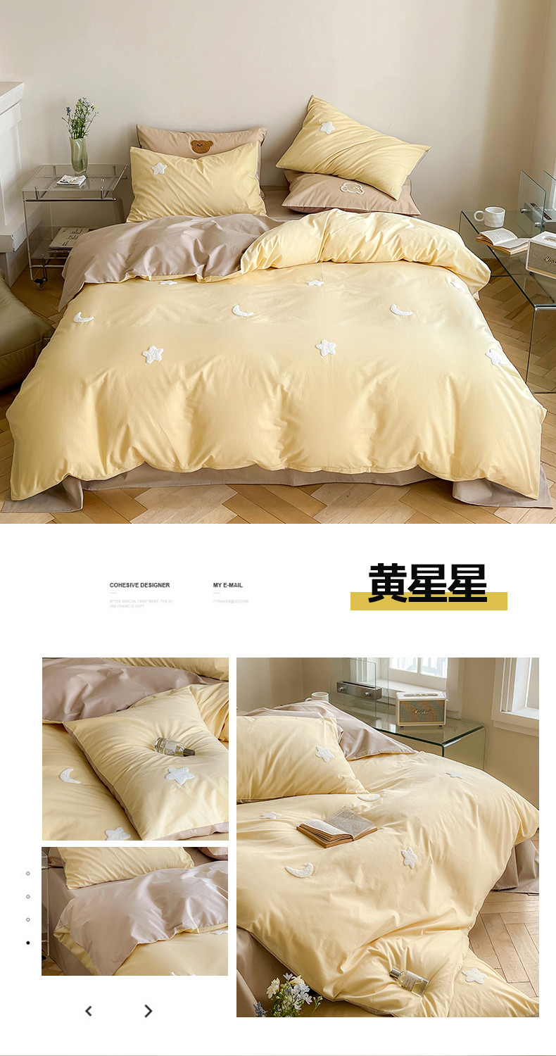 (总)时年家纺 2025新款全棉纯棉生态磨毛嵌绳款系列四件套,绿光森林,星光彩虹,芝士蘑菇