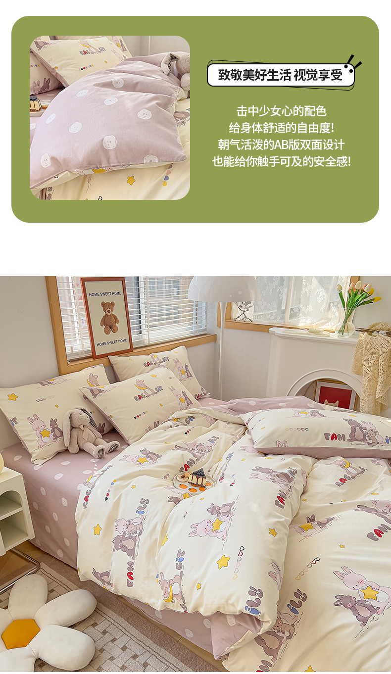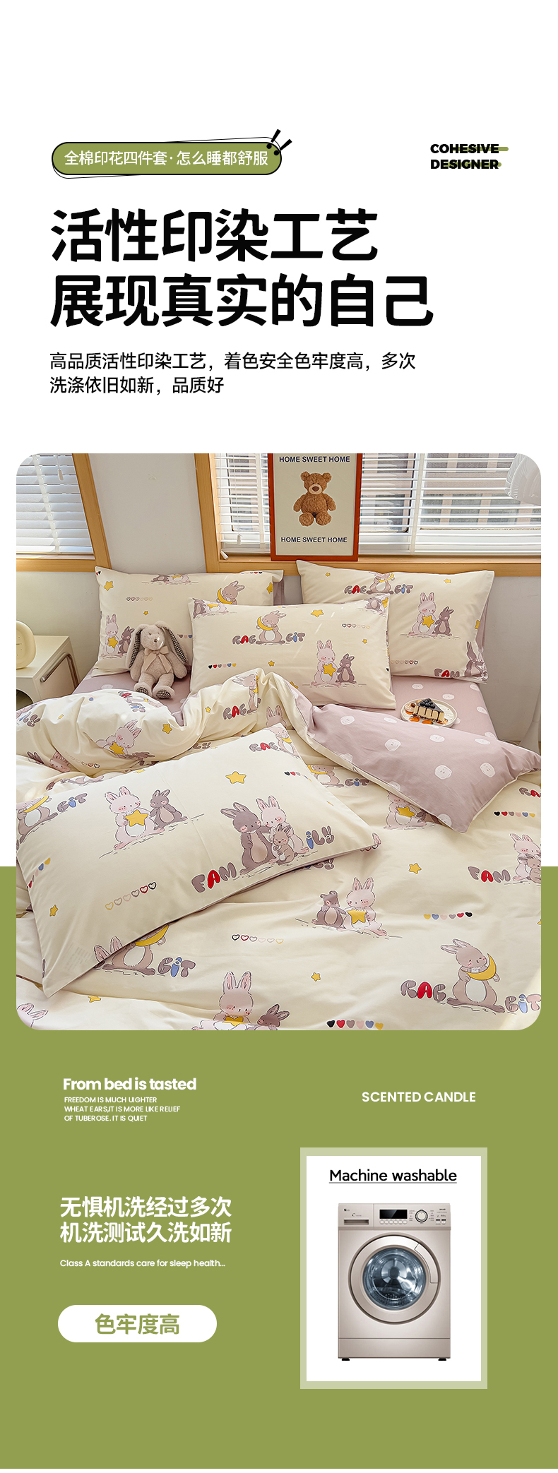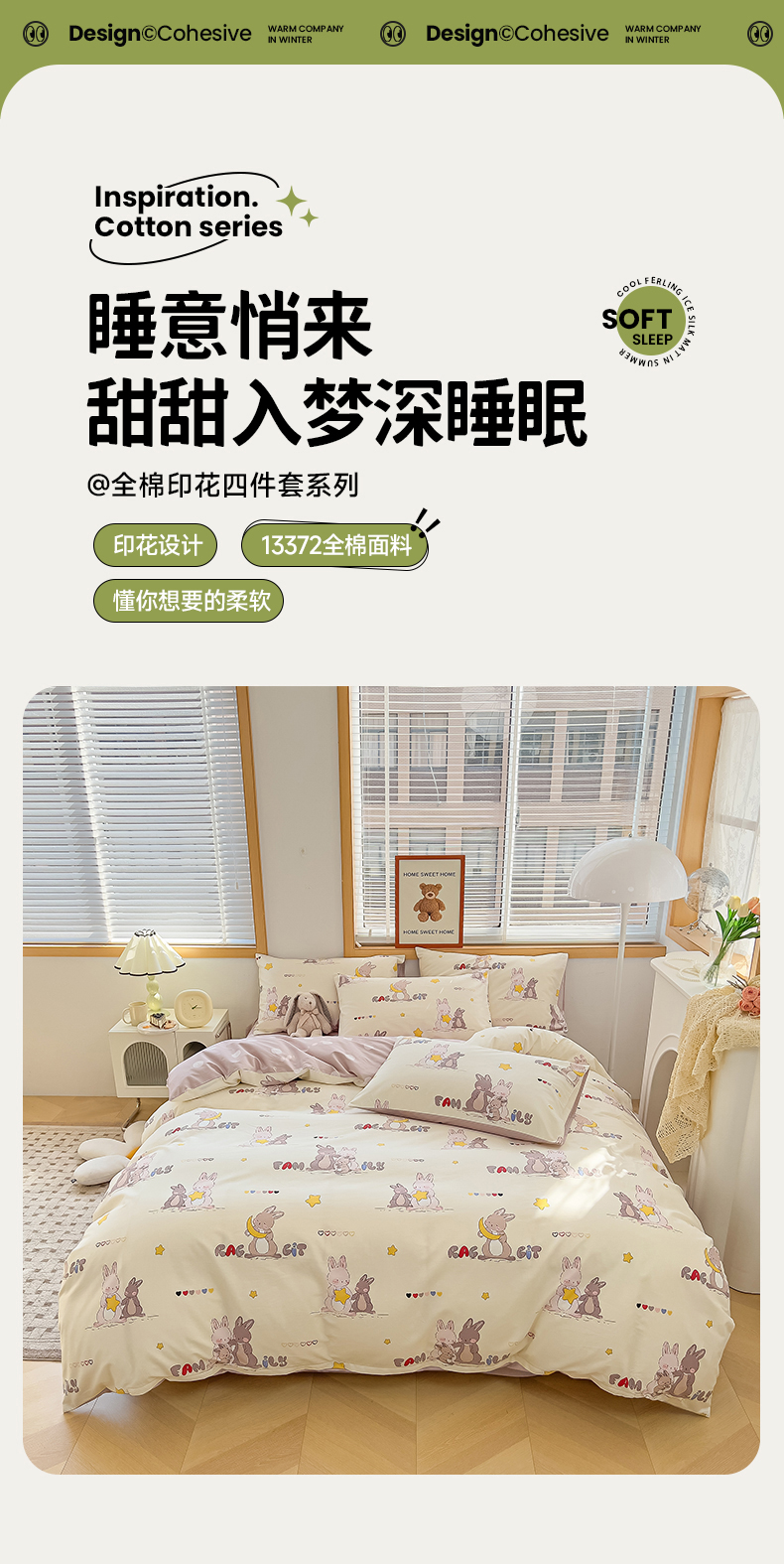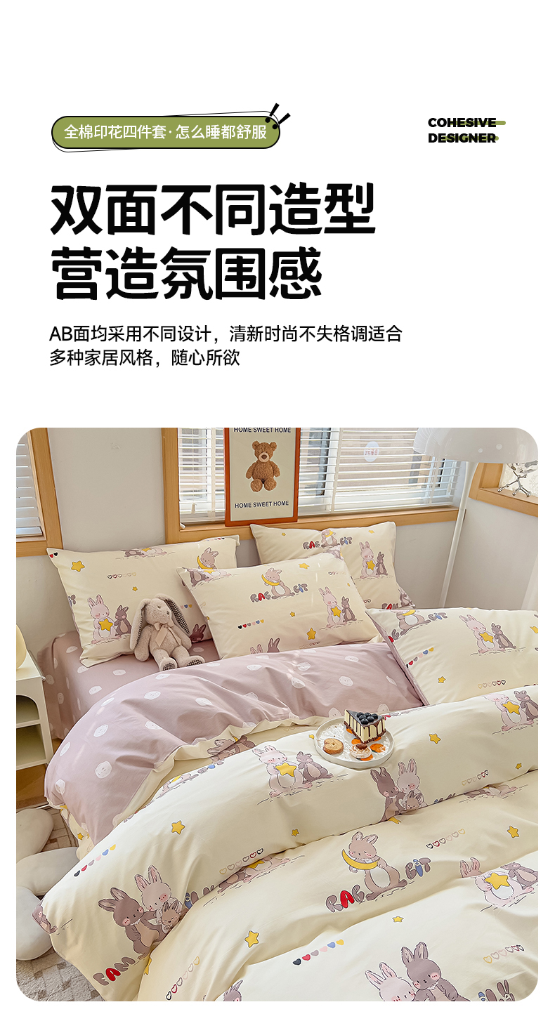 寐眠 2023新款13372全棉印花四件套 星月小兔