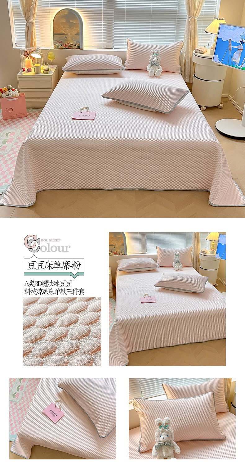 商品名称:2024新款A类3D魔法冰豆豆科技凉席床单款三件套系列 豆豆床单席-粉
