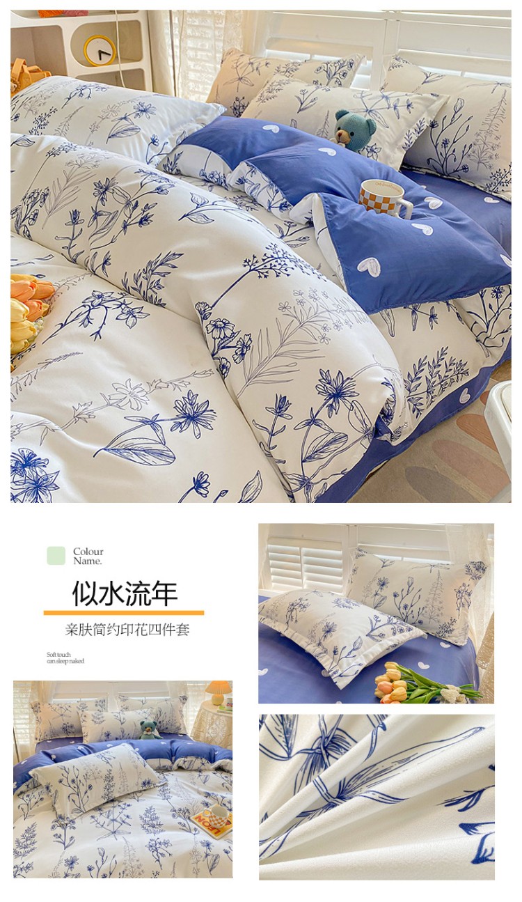 商品名称:卡斯诺 2025新款植物羊绒磨毛四件套 似水流年