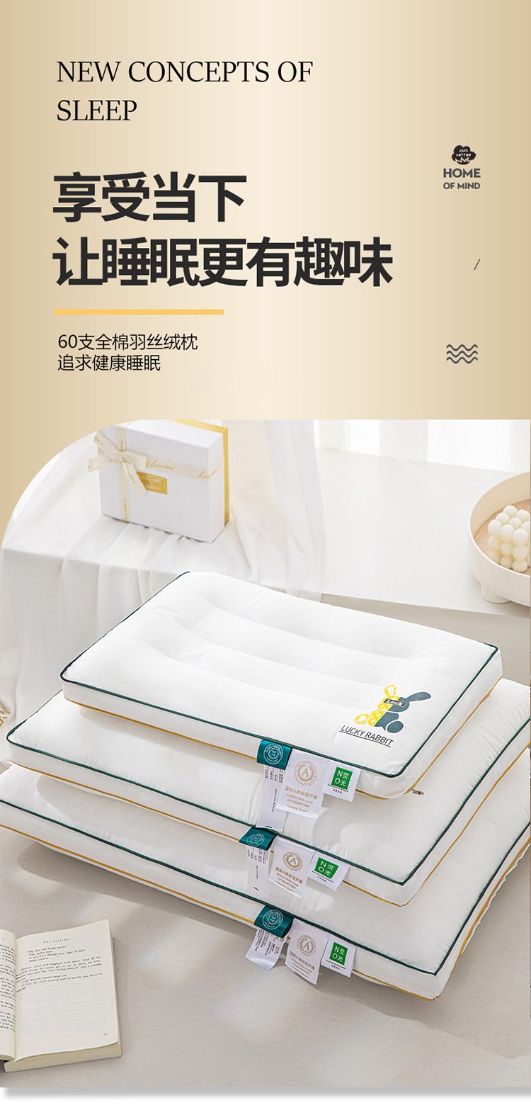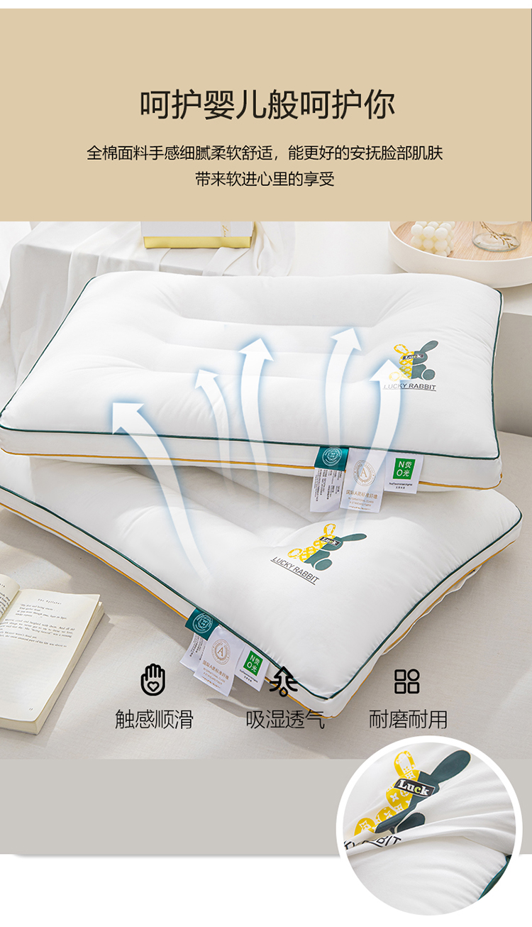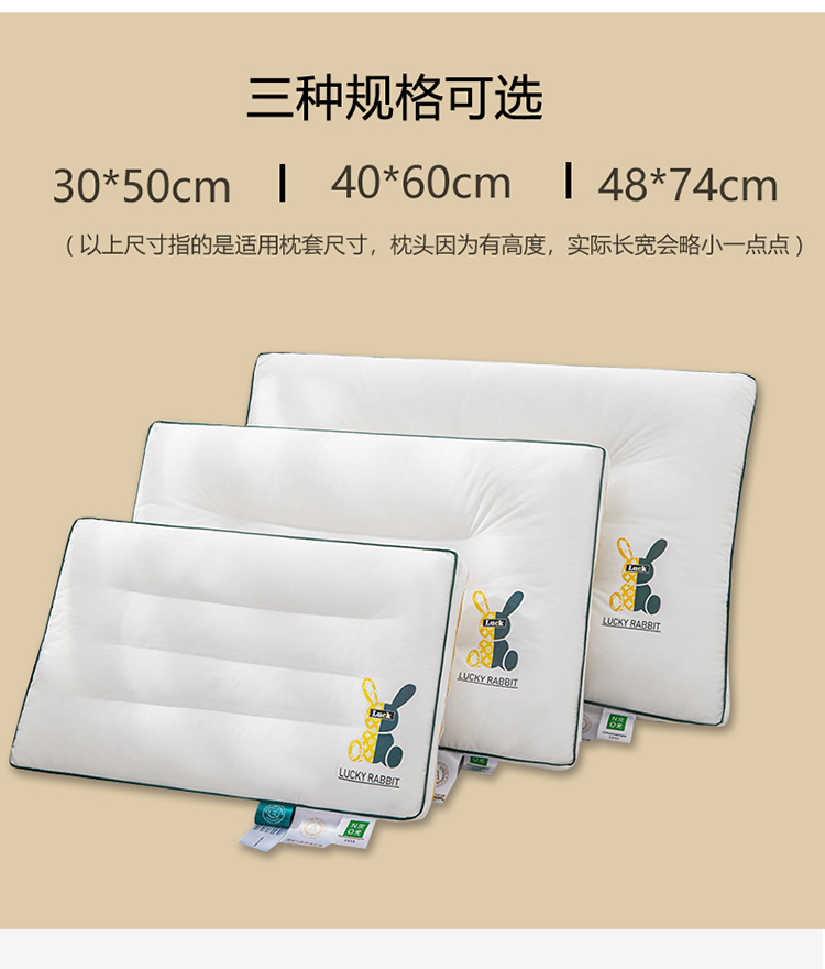 当前位置: 91家纺网 > 商品网购 > 枕头/枕芯/保健枕/颈椎枕 > 织布人 2023新款60支纯棉幸运兔儿童学生枕成人亲子护颈枕头枕芯 30*50±2CM