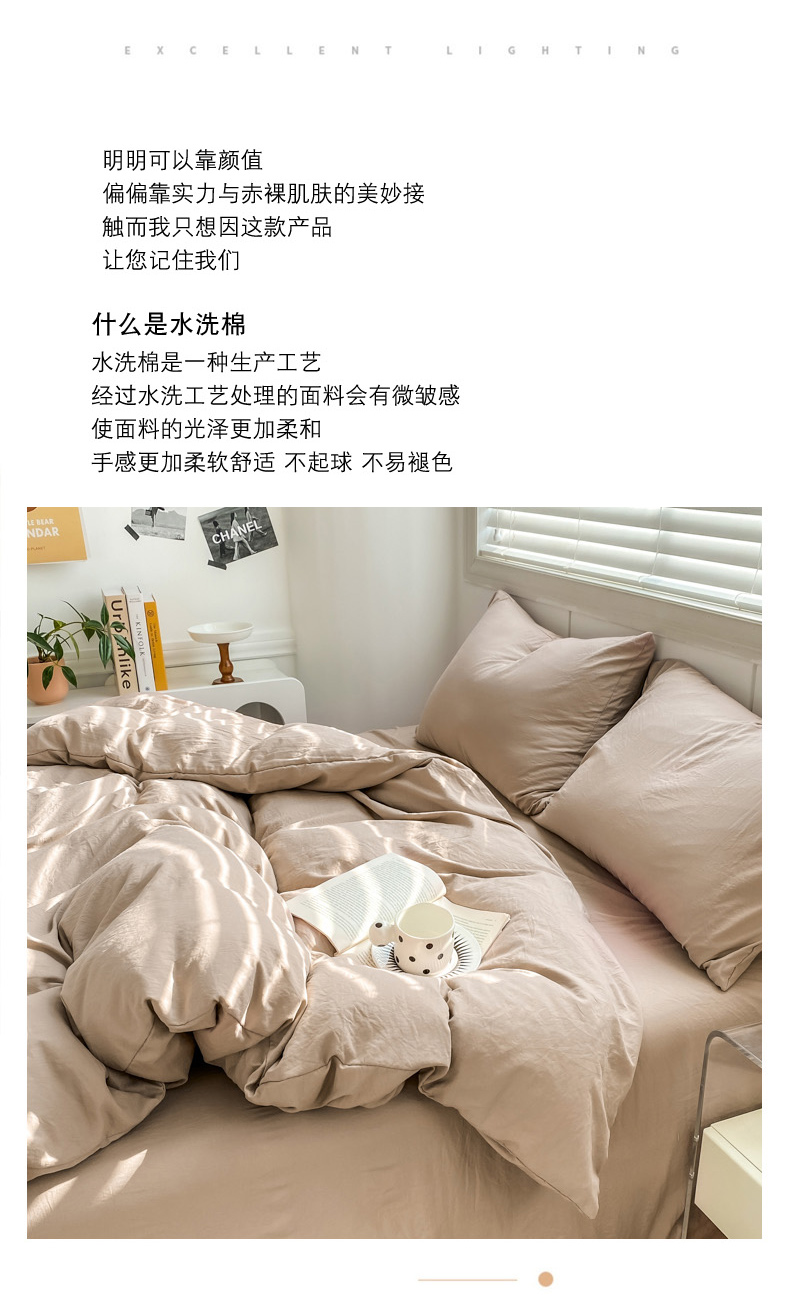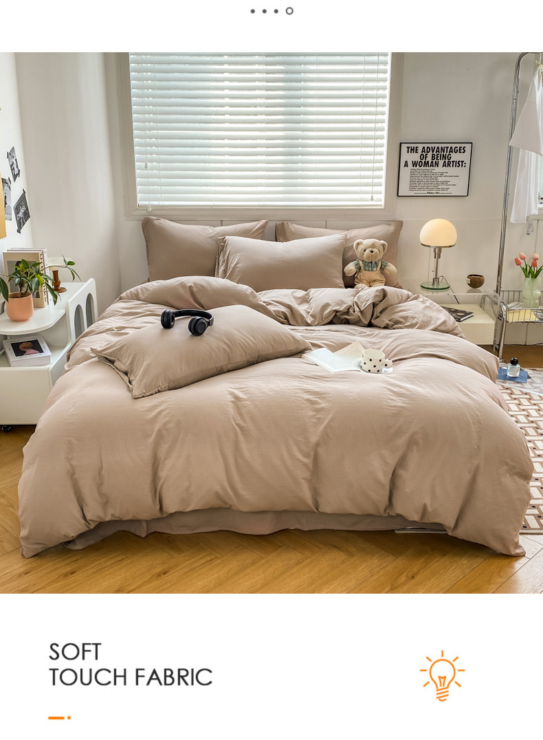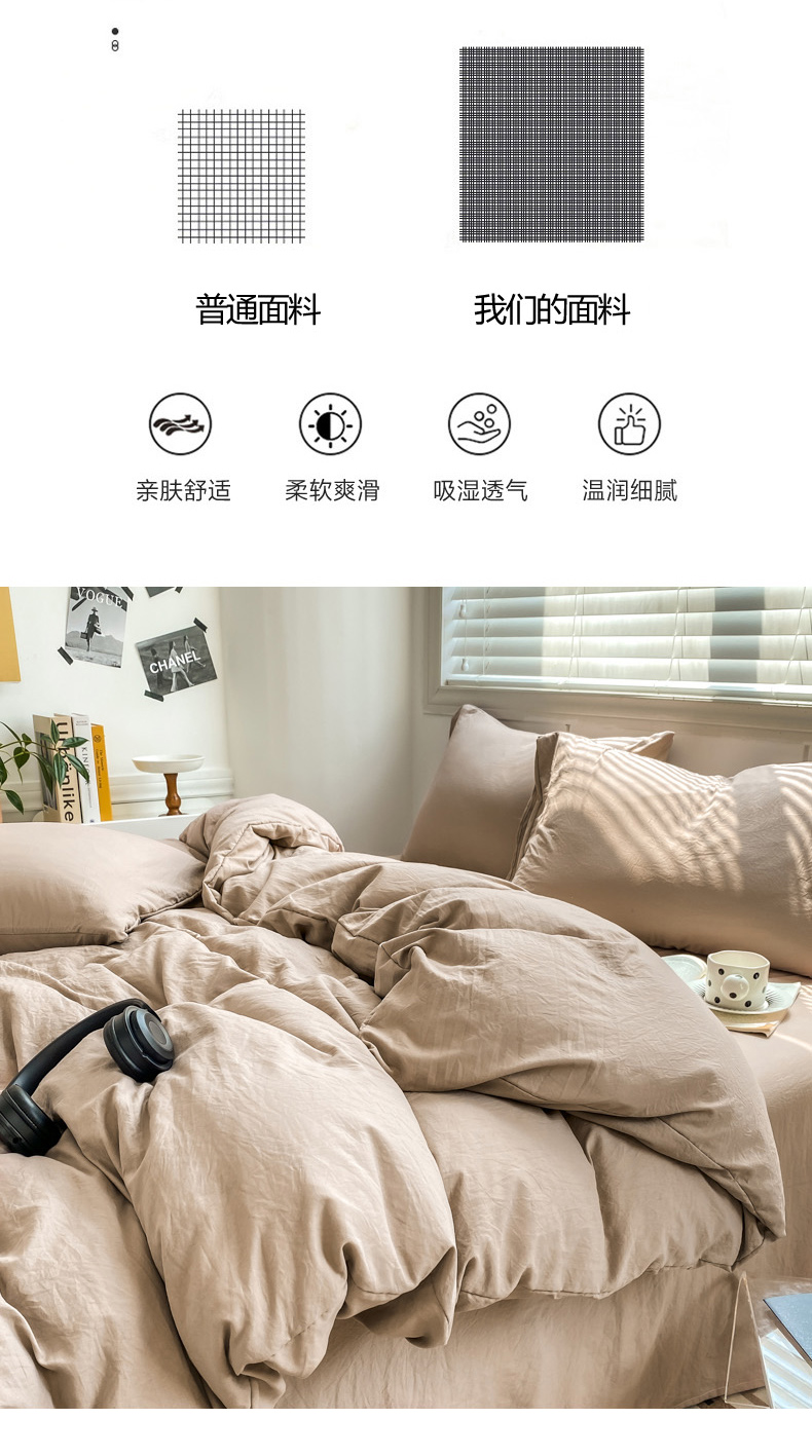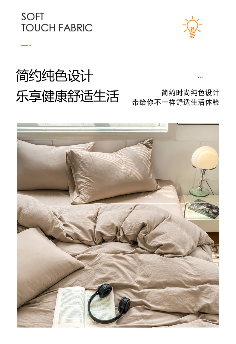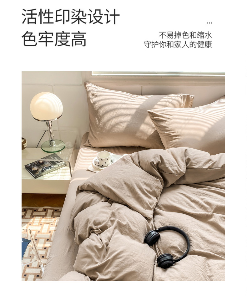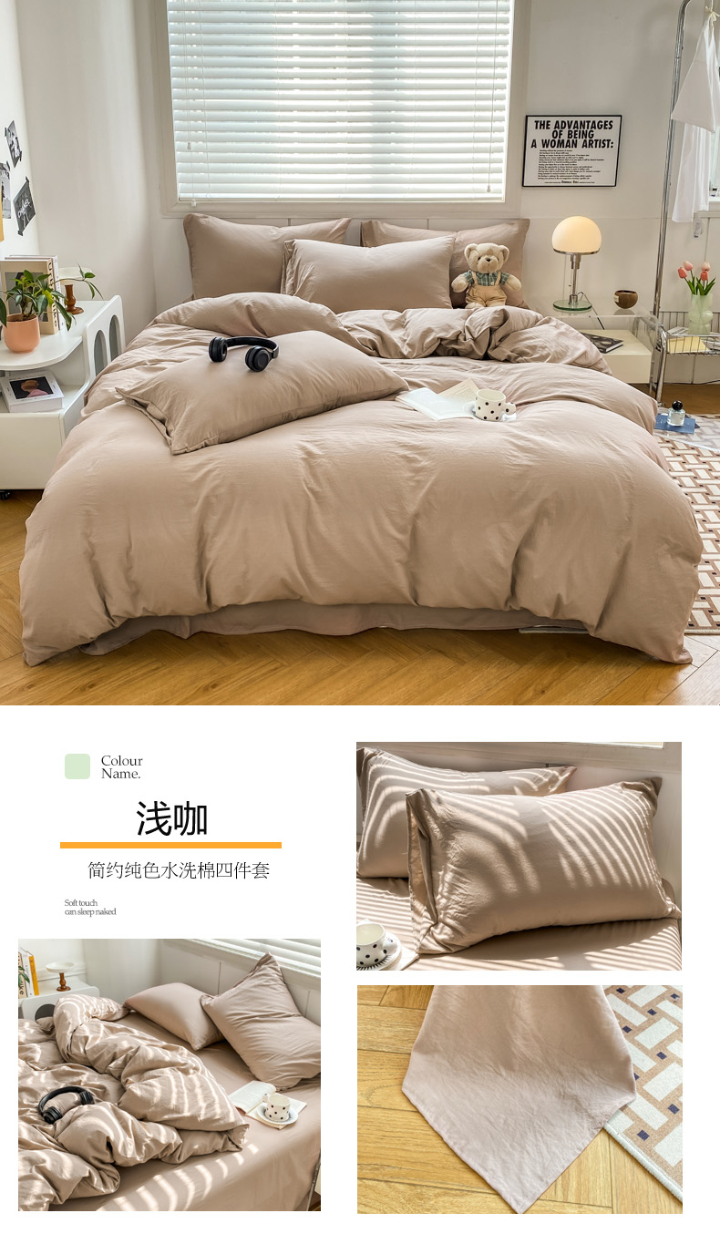 商品名称:雨帆 2023新款简约纯色水洗棉四件套 浅咖