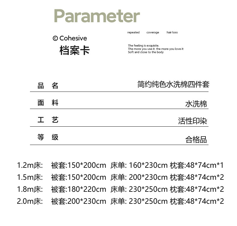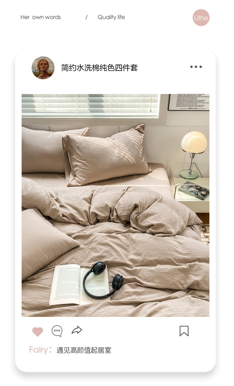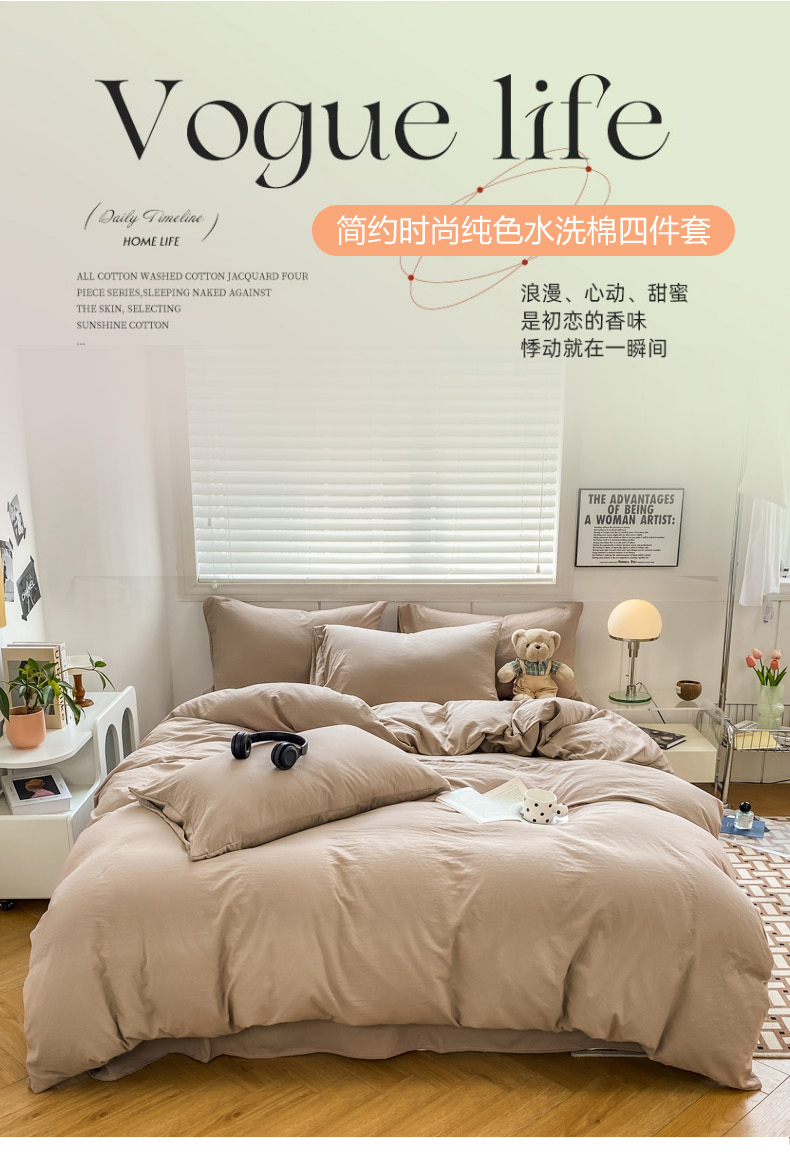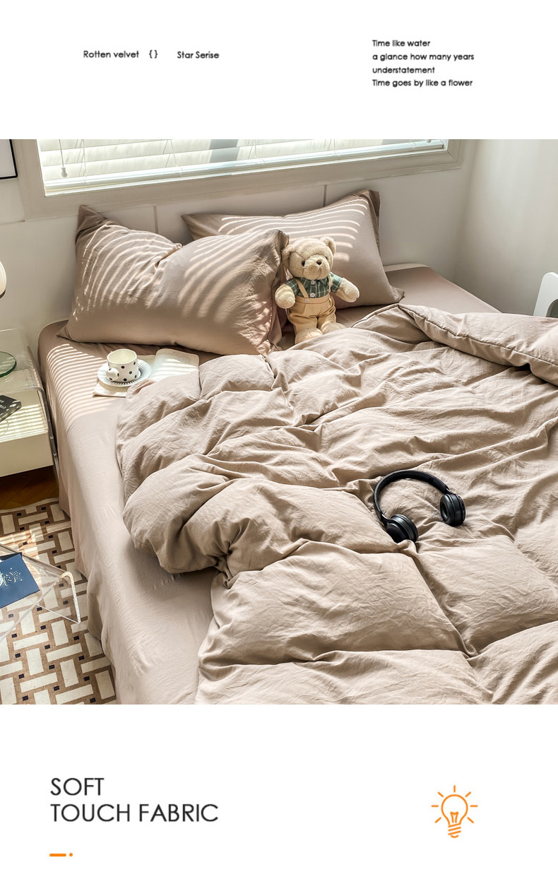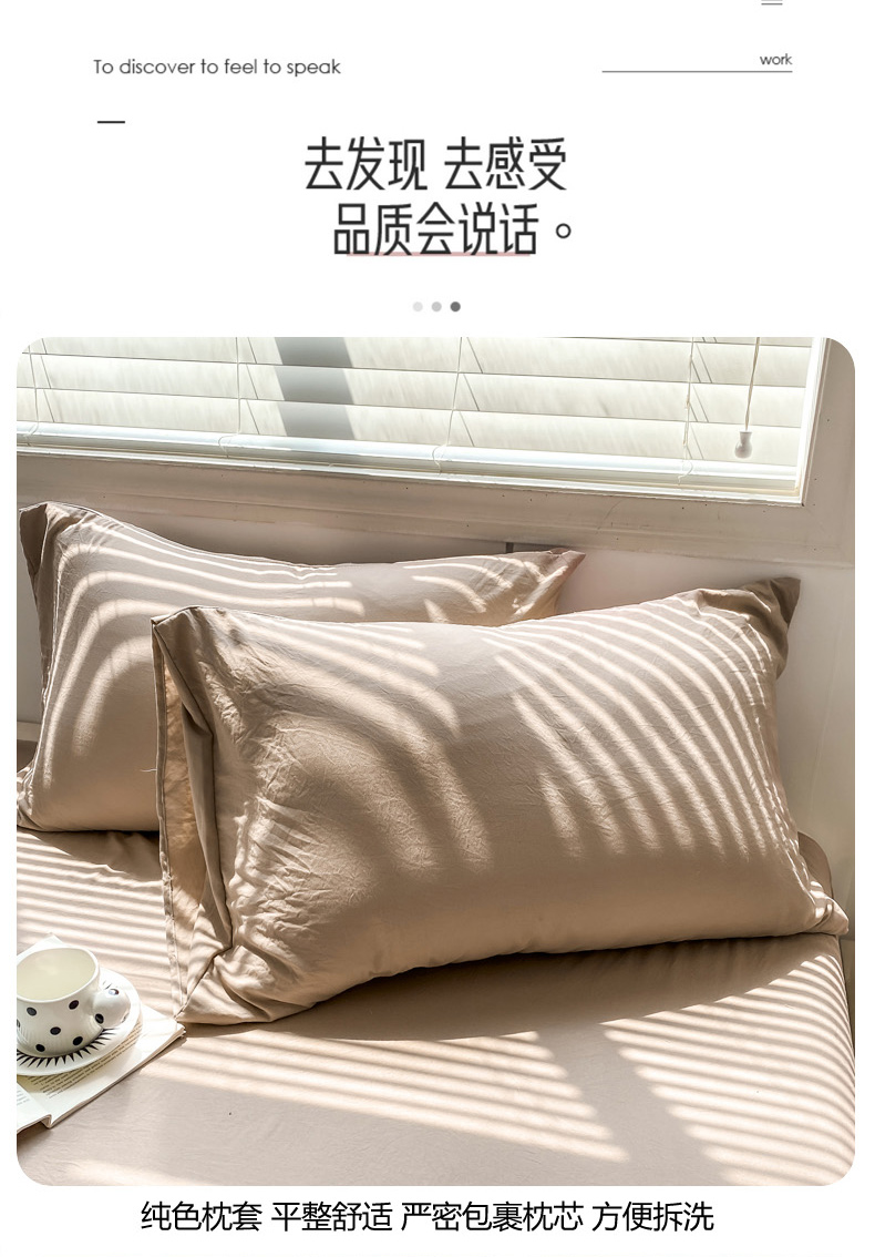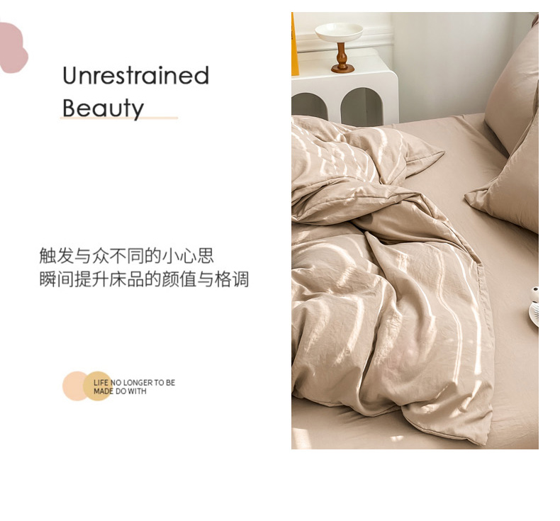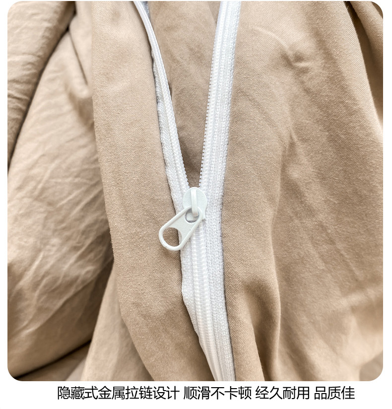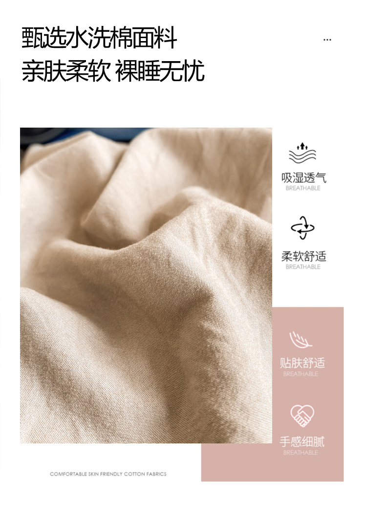 商品名称:雨帆 2023新款简约纯色水洗棉四件套 浅咖