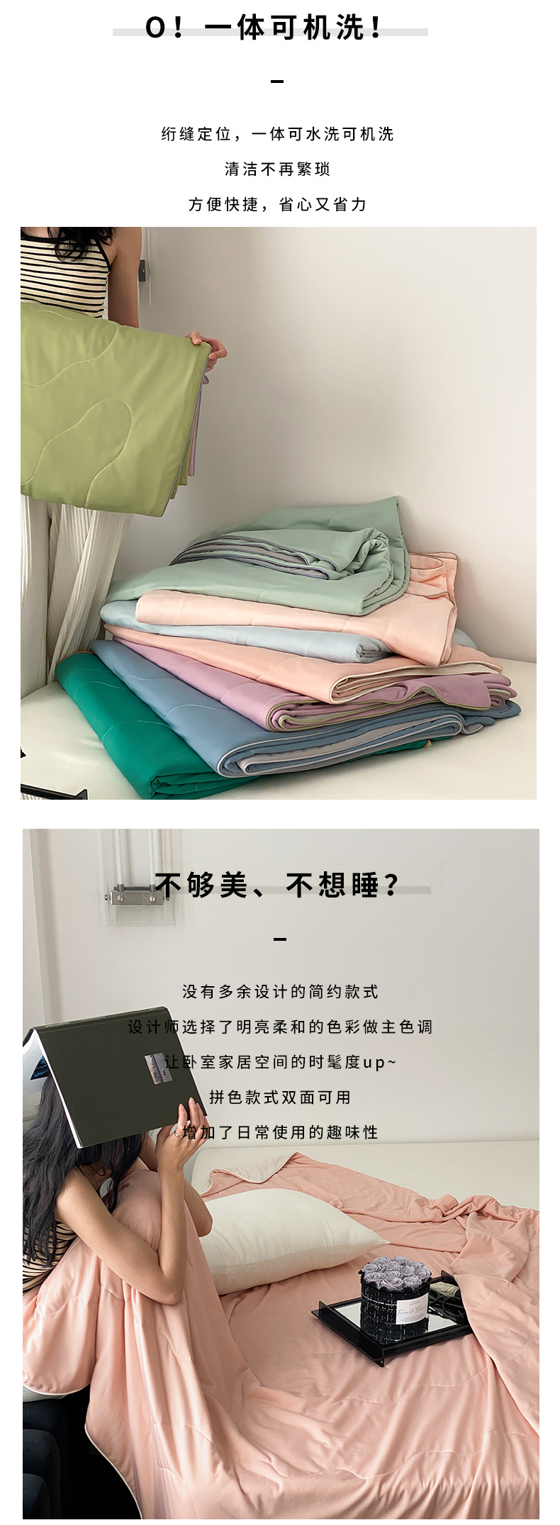 (总)西西家居 2023新款纯色凉感丝夏被,蓝粉拼,奶油咖,柠檬黄,清新绿,深海蓝,婴儿蓝,樱花粉,冰粉绿,冰瓜绿,冰绿灰,冰米粉,冰浅蓝灰,冰深蓝灰,冰桃粉,冰紫灰,梦幻紫