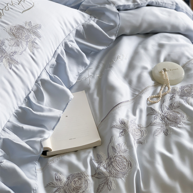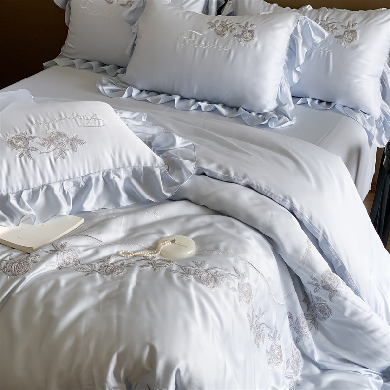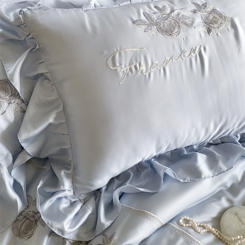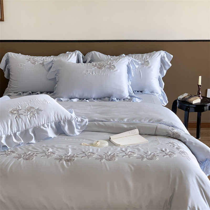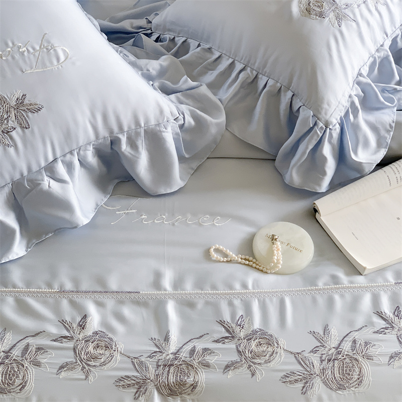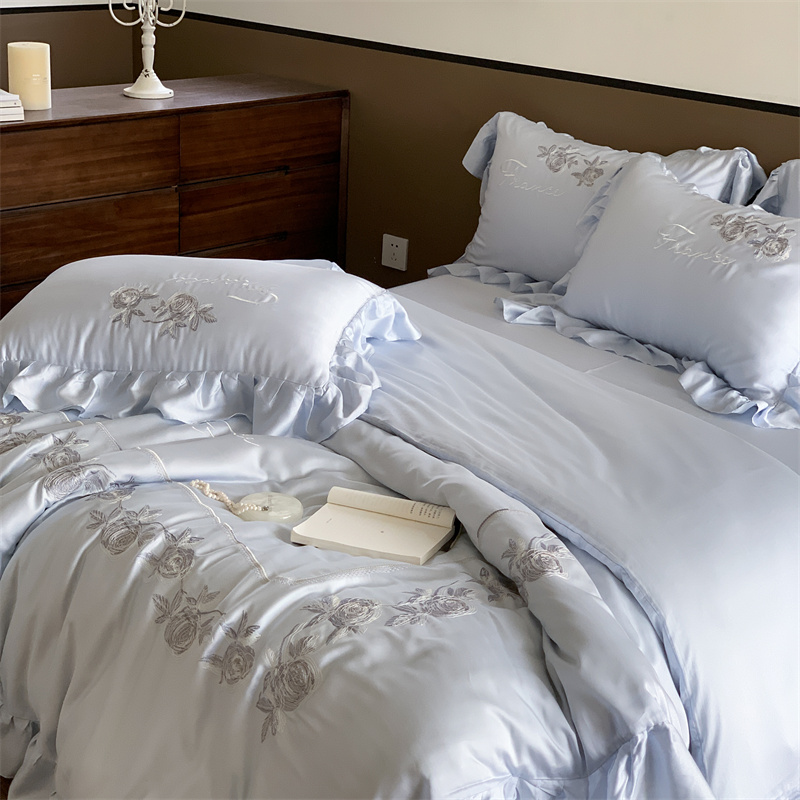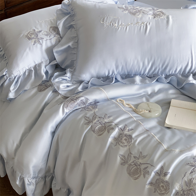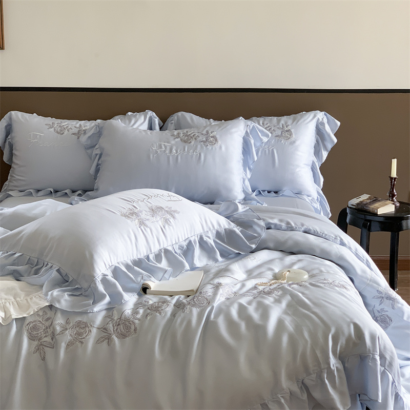 商品名称:若未 2023新款法式兰精天丝法式绣花四件套 芙洛娜-蓝