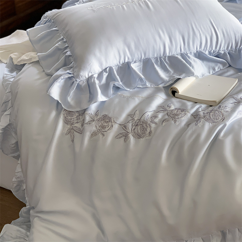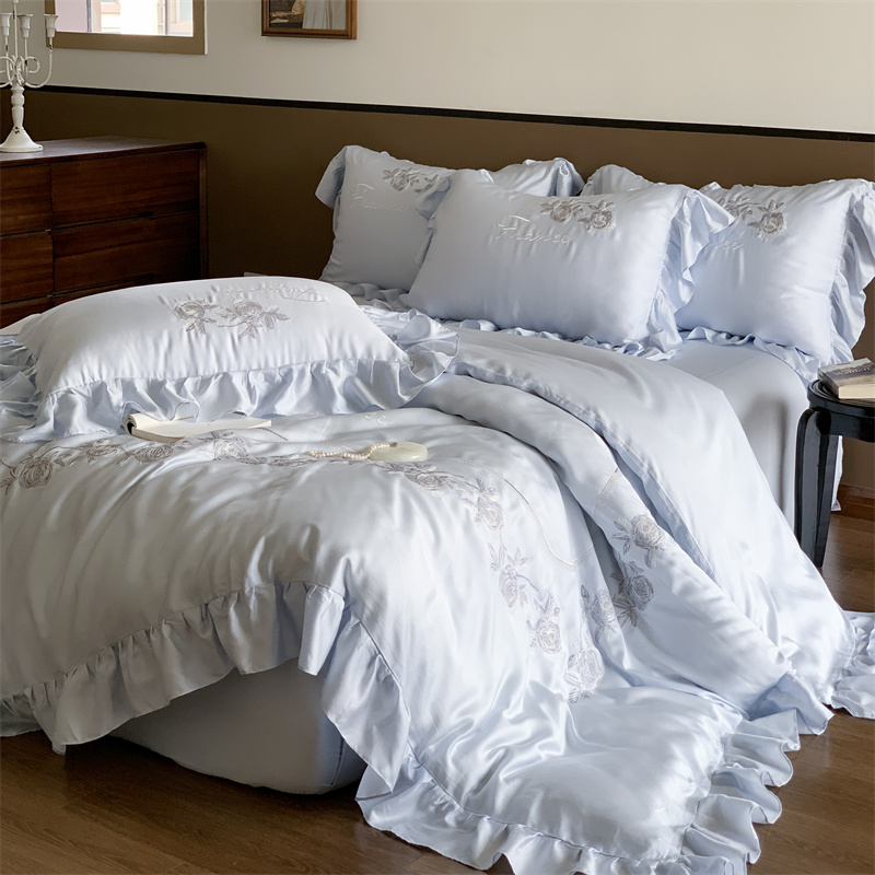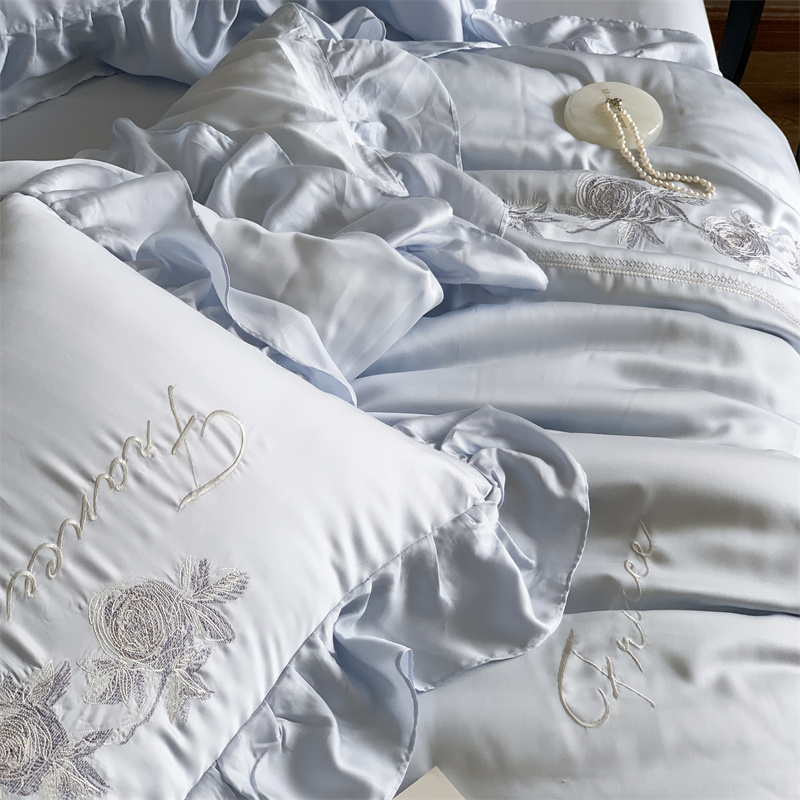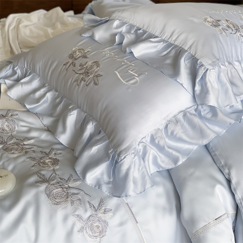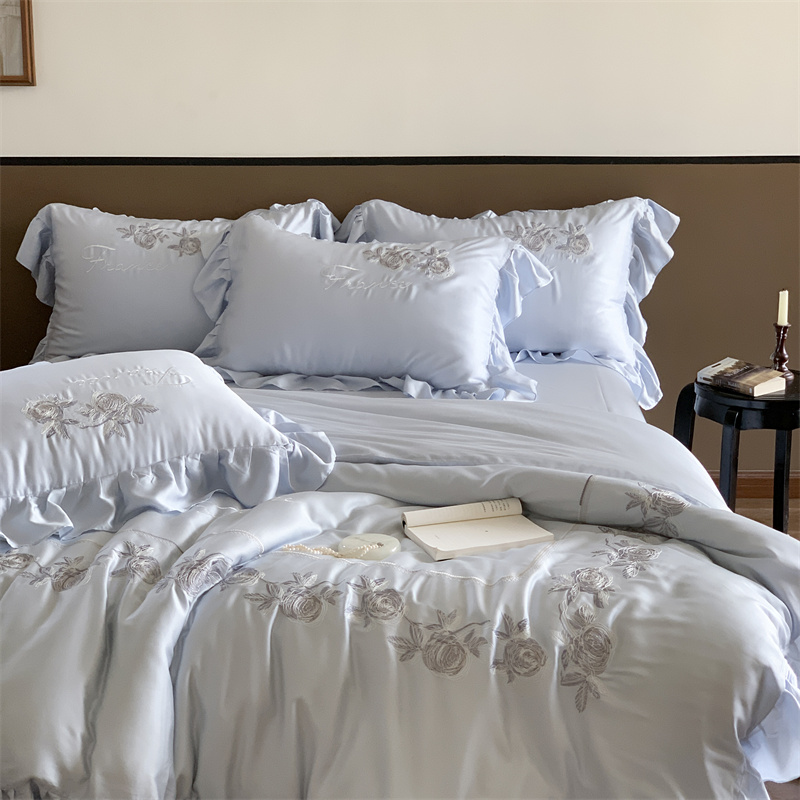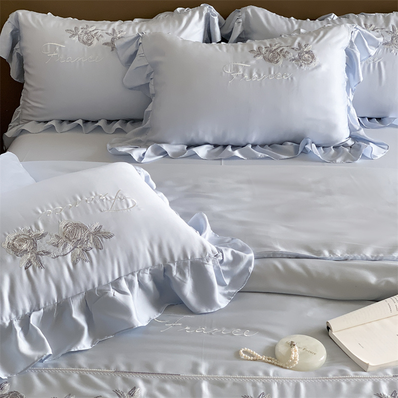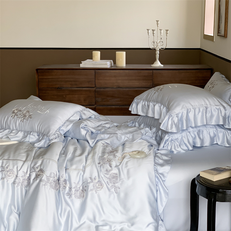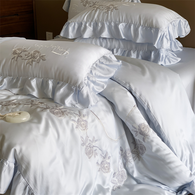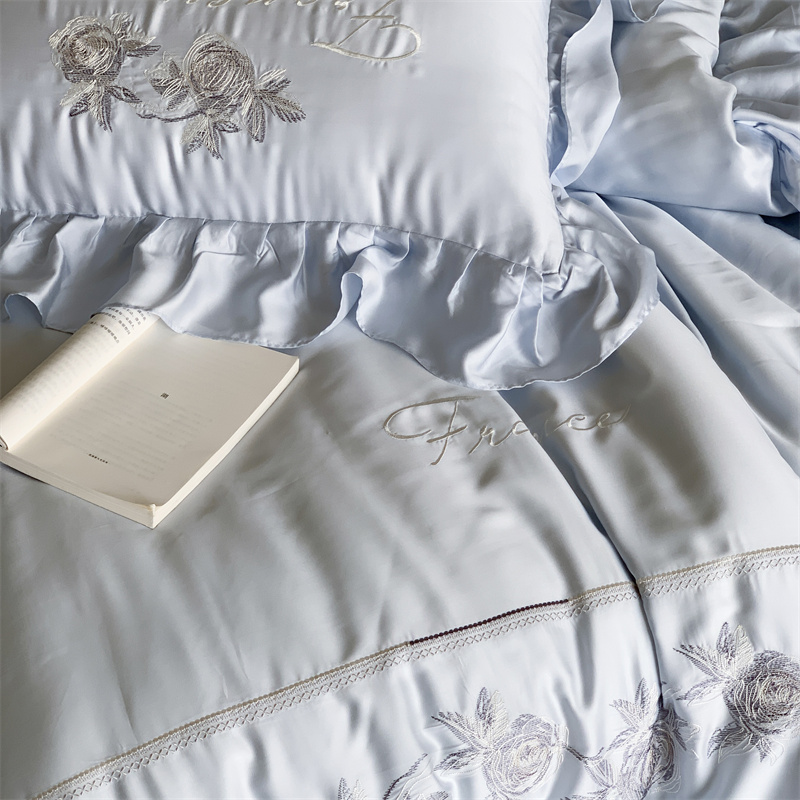商品名称:若未 2023新款法式兰精天丝法式绣花四件套 芙洛娜-蓝