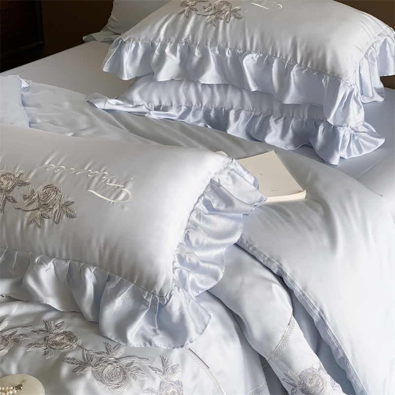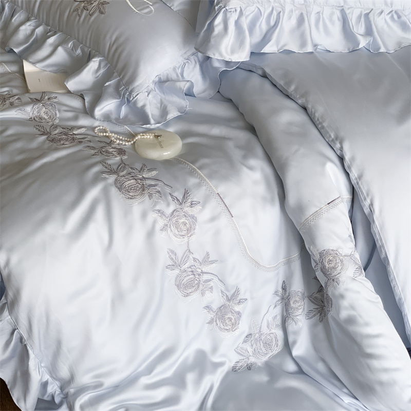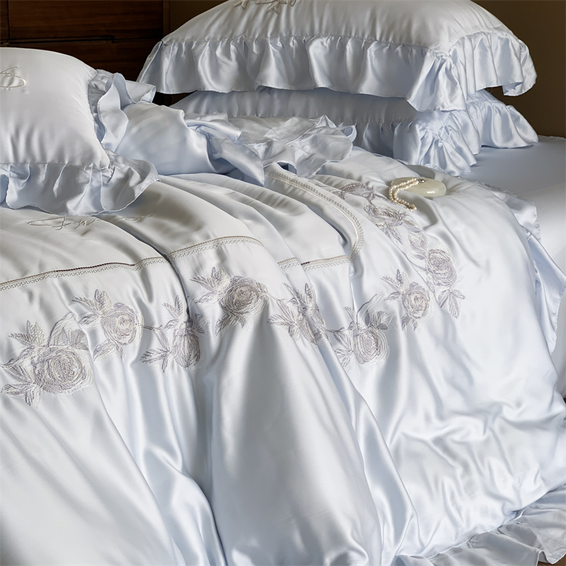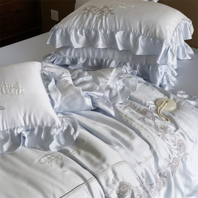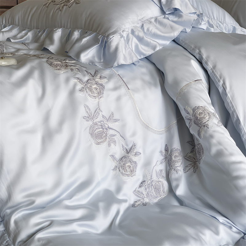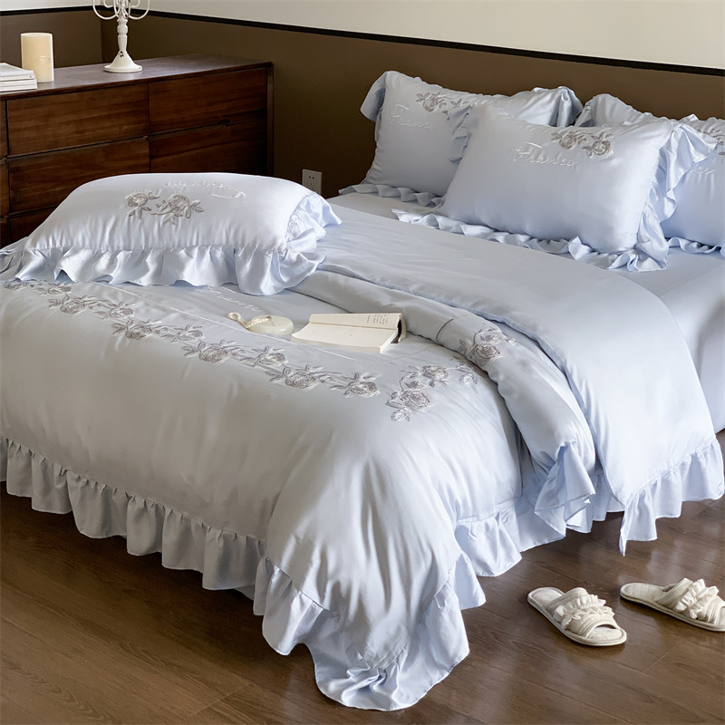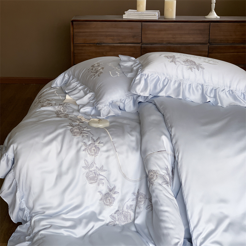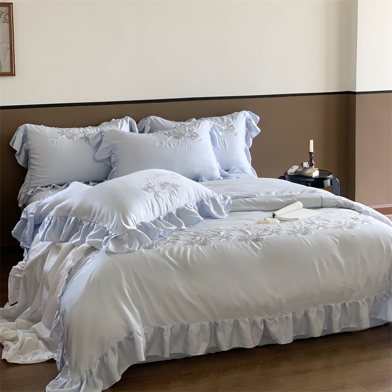 商品名称:若未 2023新款法式兰精天丝法式绣花四件套 芙洛娜-蓝