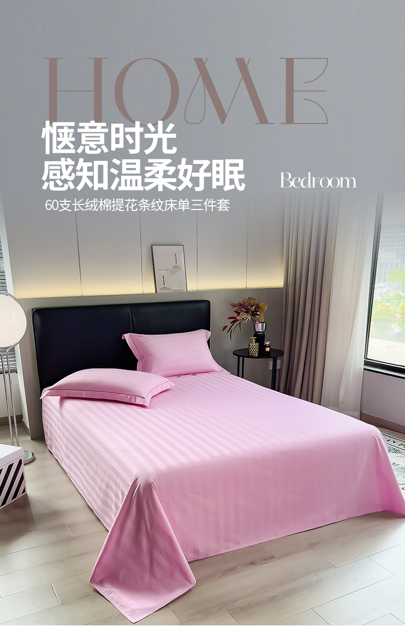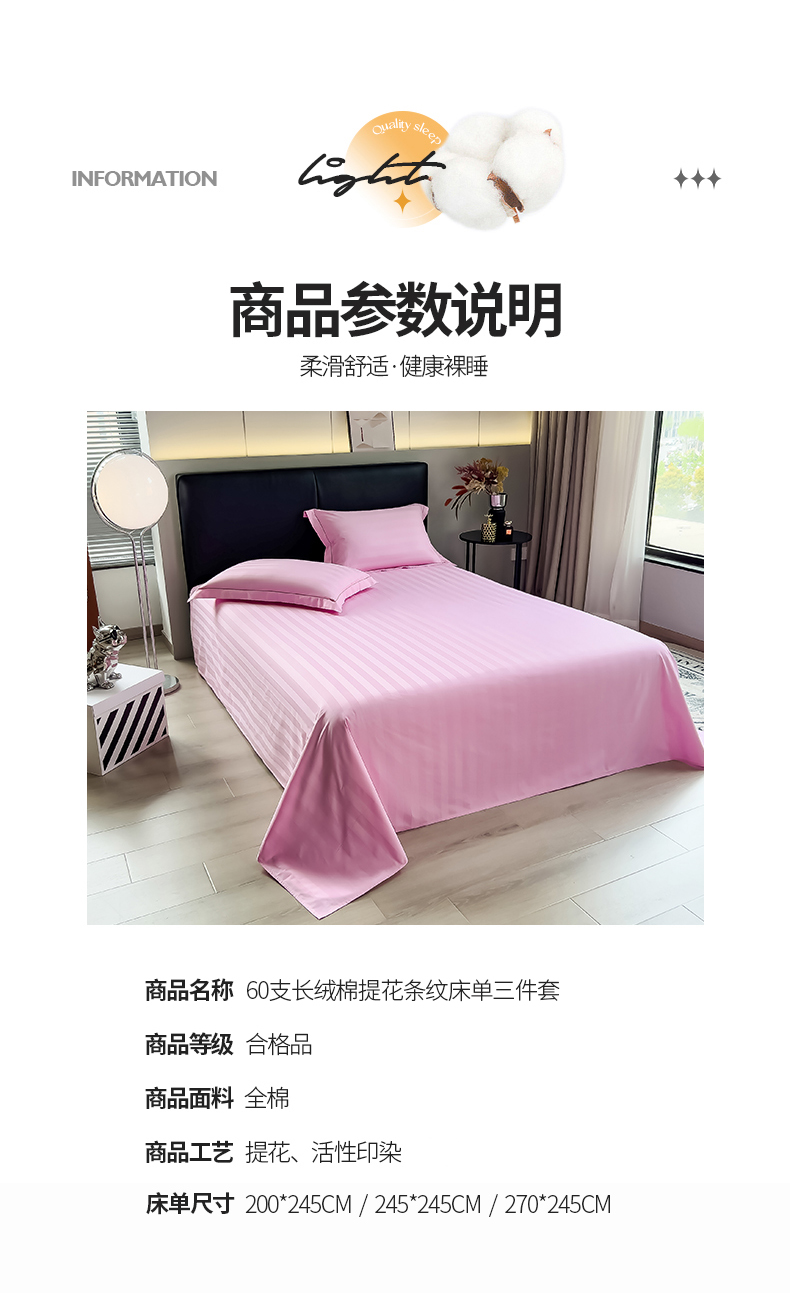商品名称:品乐 2023新款 60支长绒棉提花条纹单床单 条纹粉色