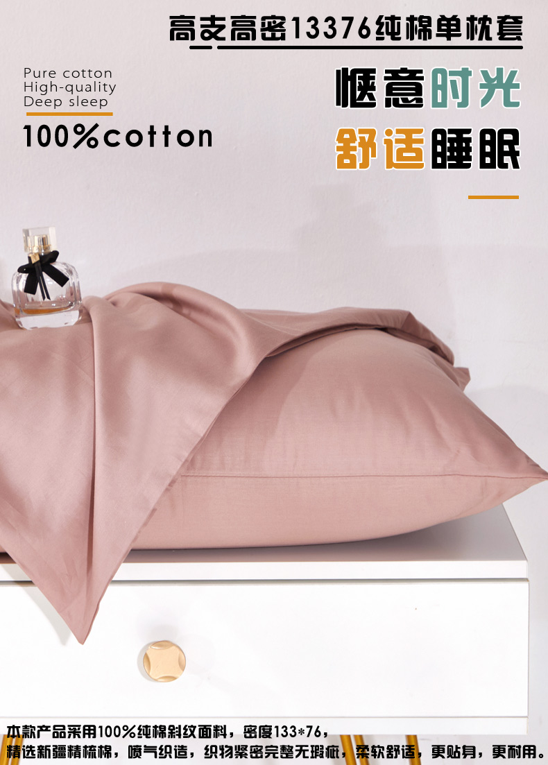 商品名称:晶缦家纺 2023新款喷气全棉13376纯棉斜纹纯色单品枕套 沐色-奶咖