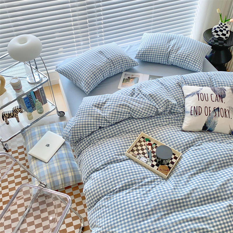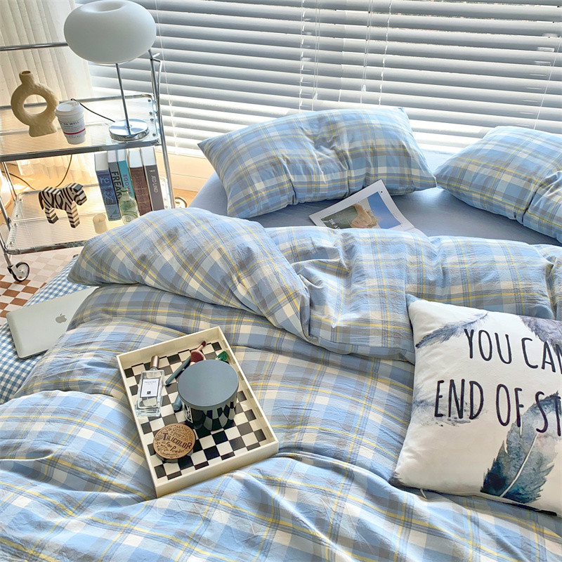 (总)三沁 2024新款全棉色织水洗棉开学季学生三件套六件套大礼包,蓝大格,潮格豆沙,粉白大格,粉白中格,海蓝大格,灰中格,简兮蓝,蓝白中格,蓝小格,曼达拉,沐梵,浅绿黄中格,香芋紫中格,英伦桔,紫黄中格