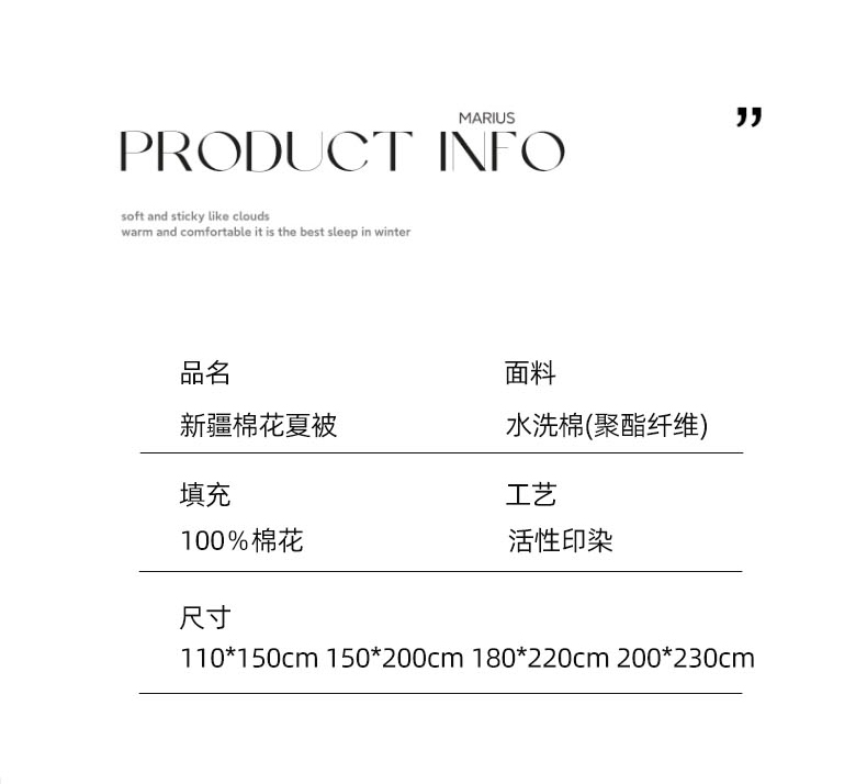 商品名称:(总)芯恋家居 2025新款水洗棉夏被夏凉被棉花被