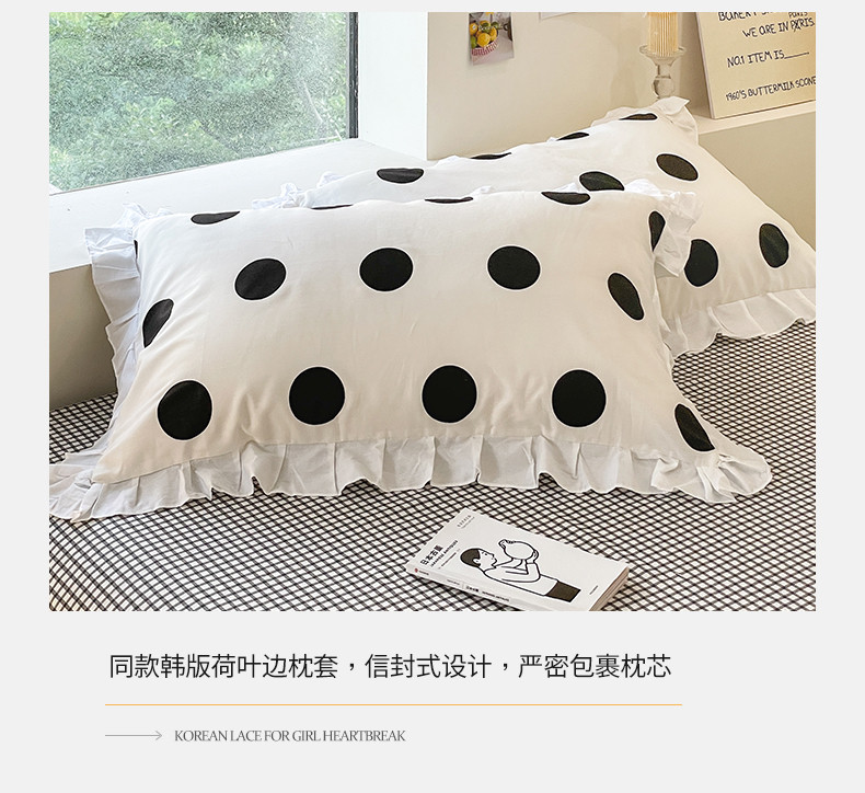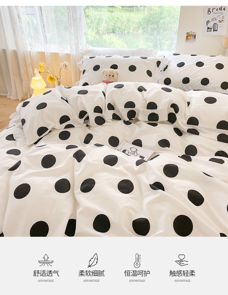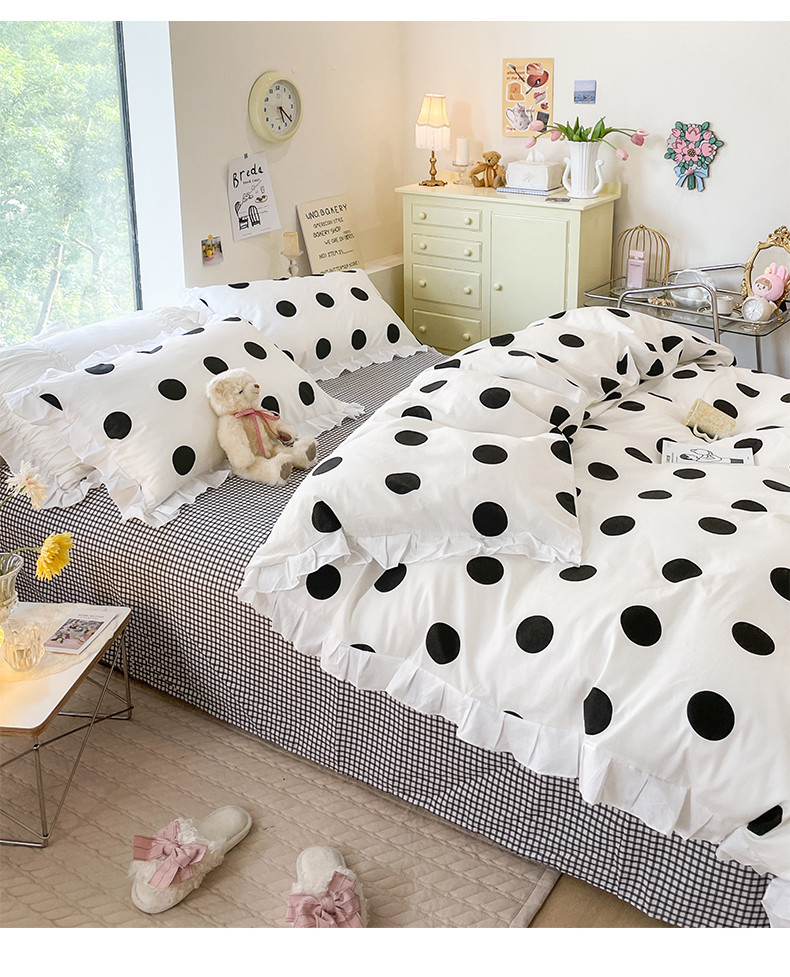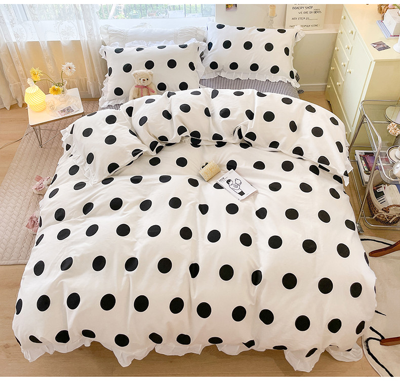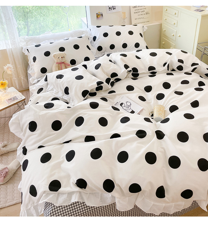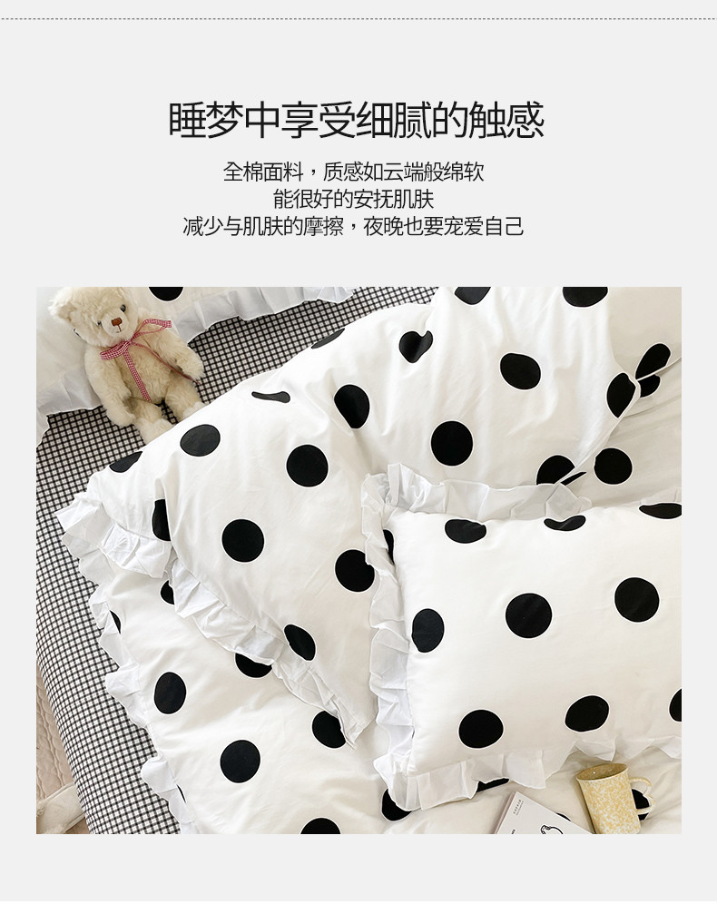 桃子 2023新款仙气奶油碎花少女心韩版花边纯棉四件套 花边-波点