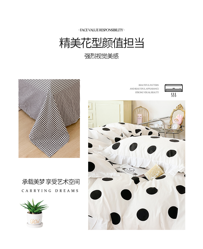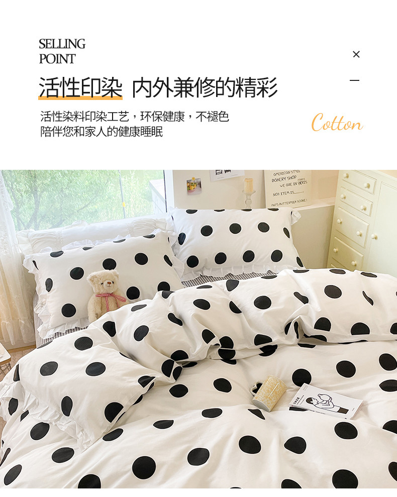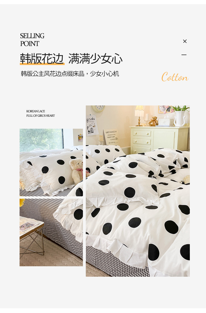 商品名称:桃子 2023新款仙气奶油碎花少女心韩版花边纯棉四件套 花边-波点