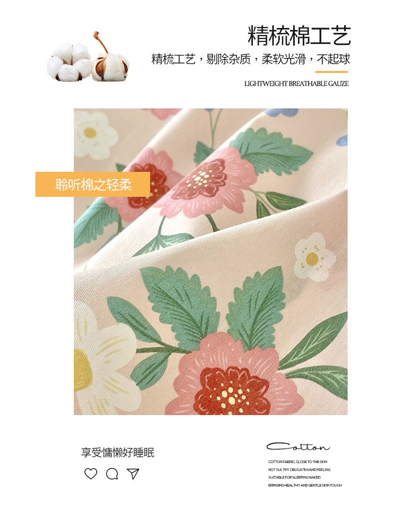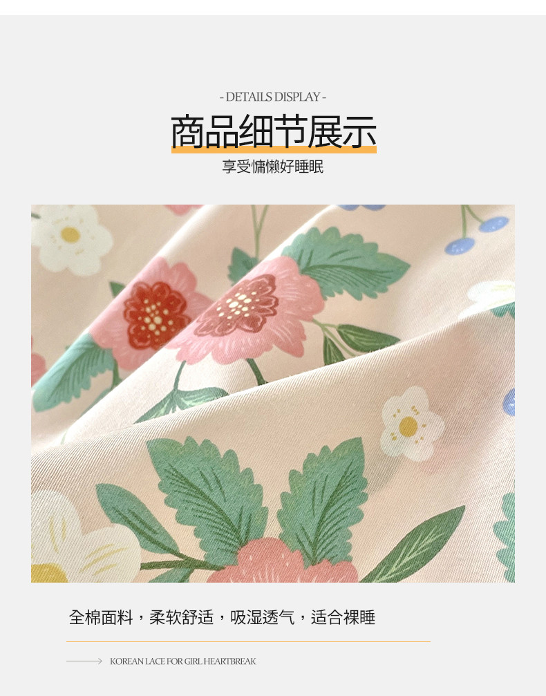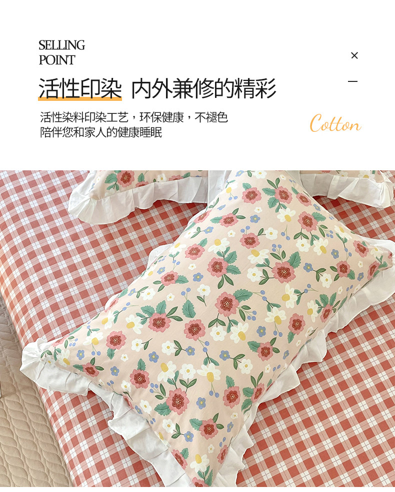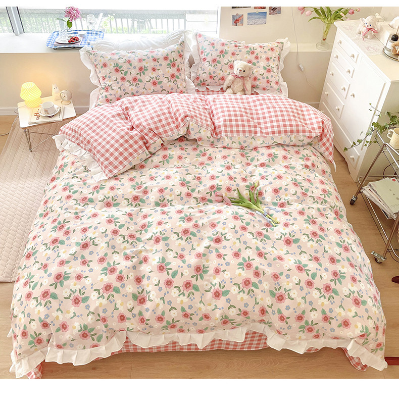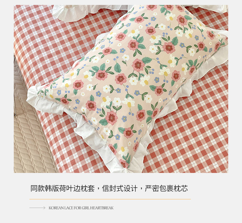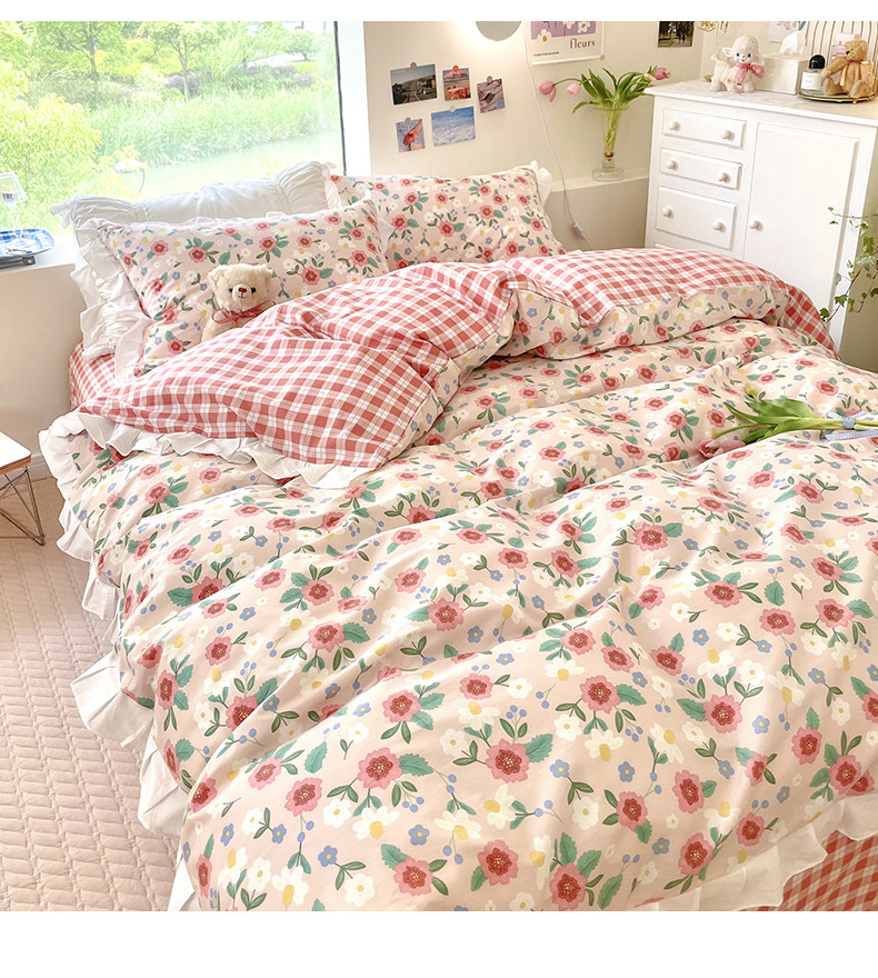 商品名称:桃子 2023新款仙气奶油碎花少女心韩版花边纯棉四件套 花边-恬淡花间