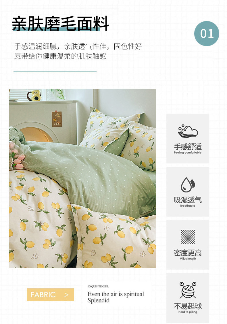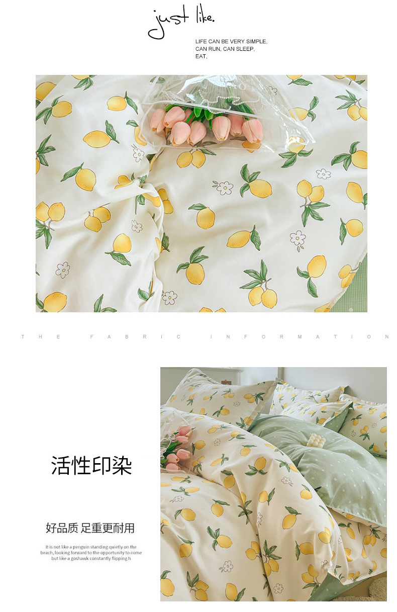 商品名称:世爵家纺 2023新款亲肤印花磨毛四件套 清香柠檬