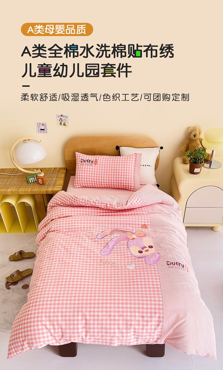 当前位置: 91家纺网 > 商品网购 > 婴童用品 > 婴童床品套件 > A类全棉水洗棉儿童套件幼儿园被子三件套宝宝午睡六件套 小兔仙子